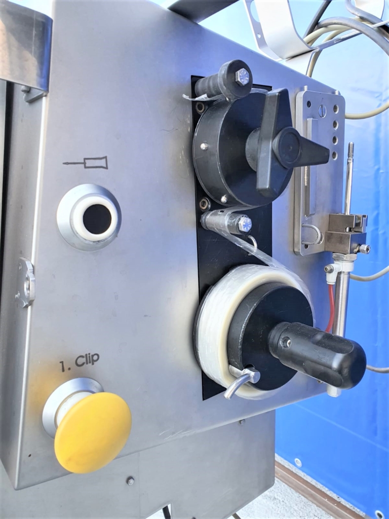 Used TipperTie KDCM A-200 is a device suitable for every production plant. It has a touch screen that makes it easy to set the device according to your needs and preferences. The possibility of closing artificial casings, collagen and natural intestines. The machine is made entirely of acid-resistant steel. Caliber Ø25 – Ø 110