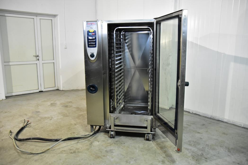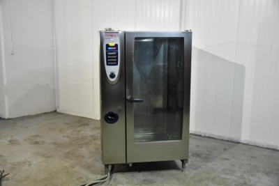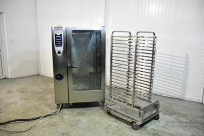 Convection steam oven RATIONAL SCC 202. The presented oven has unlimited possibilities: baking, frying, grilling, steaming, stewing, blanching, boiling in a water bath. All this can be done in one device! Compared to traditional convection ovens, the SelfCooking Center prepares food up to 15% faster – it gives you considerable savings. The SelfCooking Center do not need much space, it replaces up to 50% of traditional kitchen appliances such as convection ovens, kitchens, tilting pans, boilers, fryers, pots. SelfCooking Control fully automatically allows you to take advantage of all the technical capabilities of the SelfCooking Center.