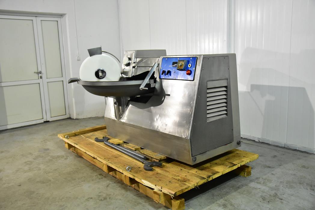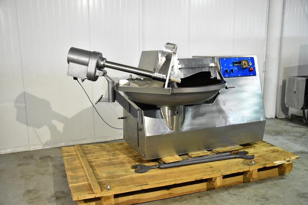 ALPINA PB 125 cutter equipped with a 6-knife cutter head. The cutter bowl is made of black steel with a capacity of 125 l.