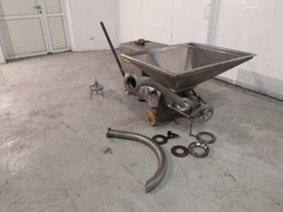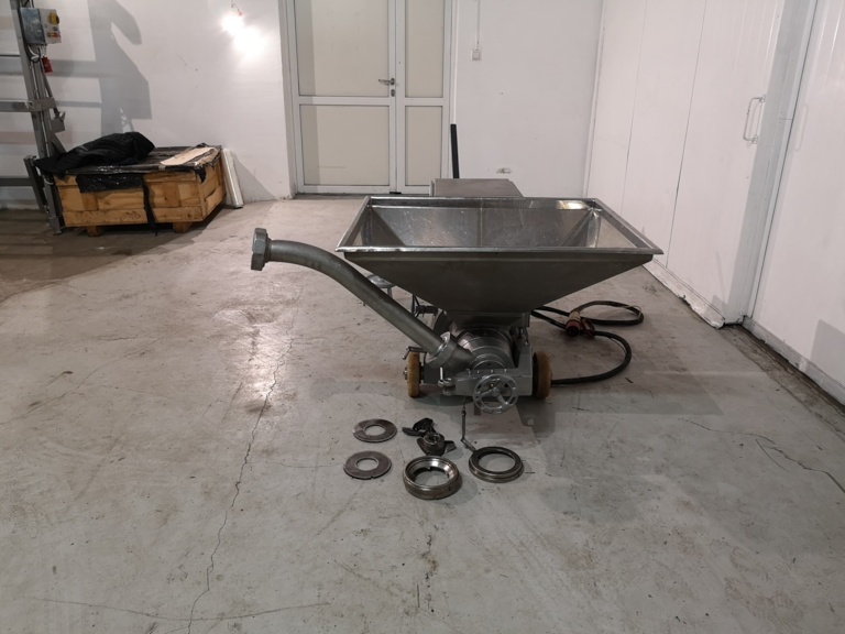 Extra outlet pipe and set of knife inserts come with the machine.
