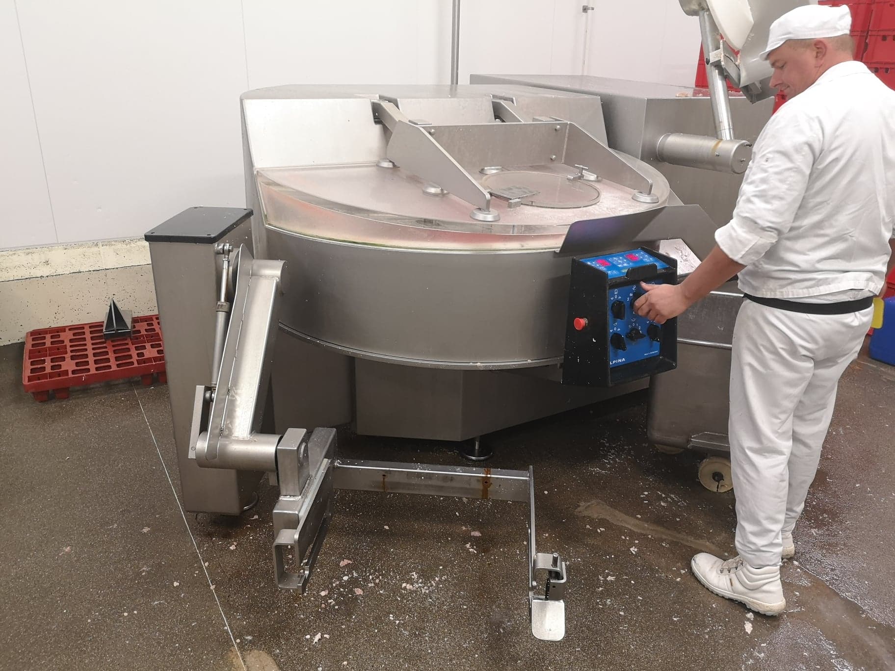Tippertie Alpina vacuum cutter with ejector and lifter for 200 liter meat bins, model: Swopper, type: SWV 330-S