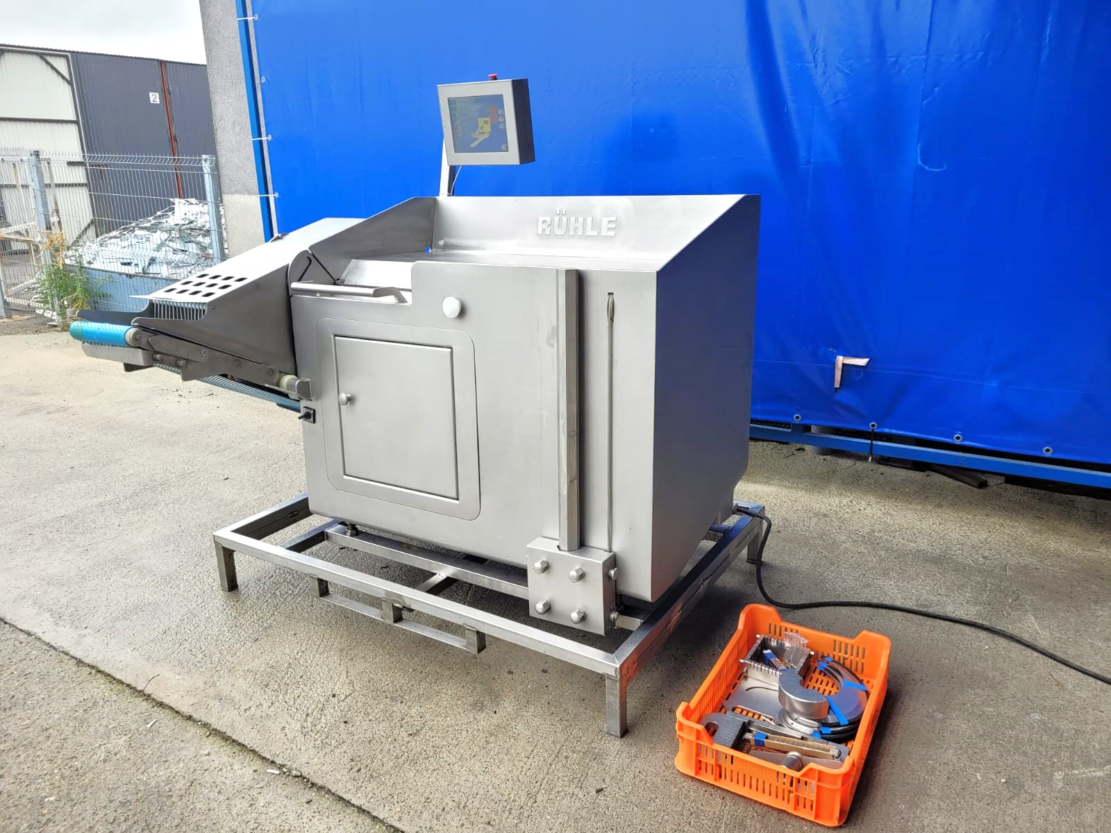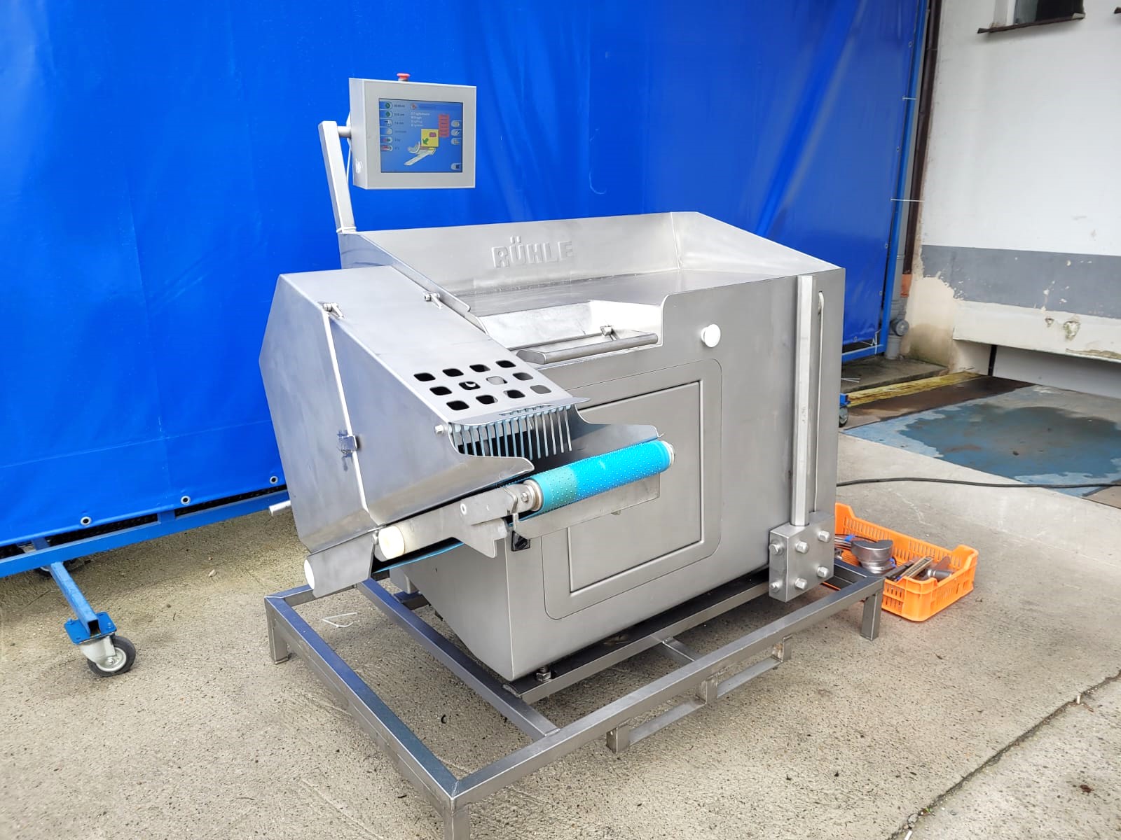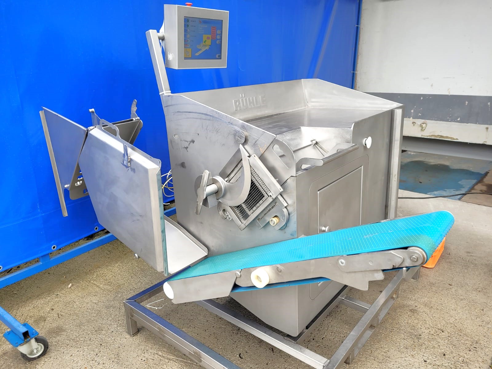 Used RÜHLE SR2 Turbo dicing machine is a machine for cutting fresh, cooked or lightly frozen meats, sausages, hams, cooked vegetables, fish and relevant types of cheese into cubes, bars or slices.