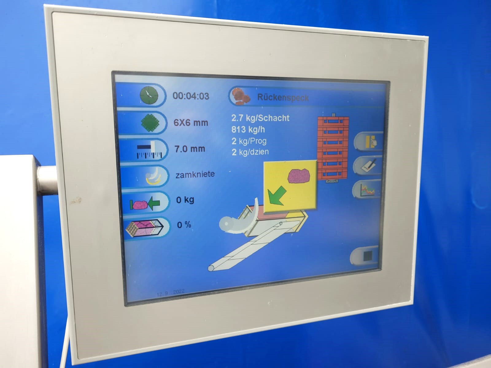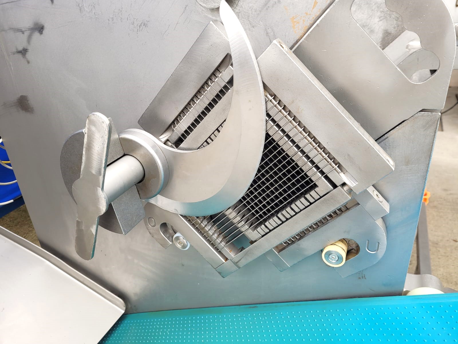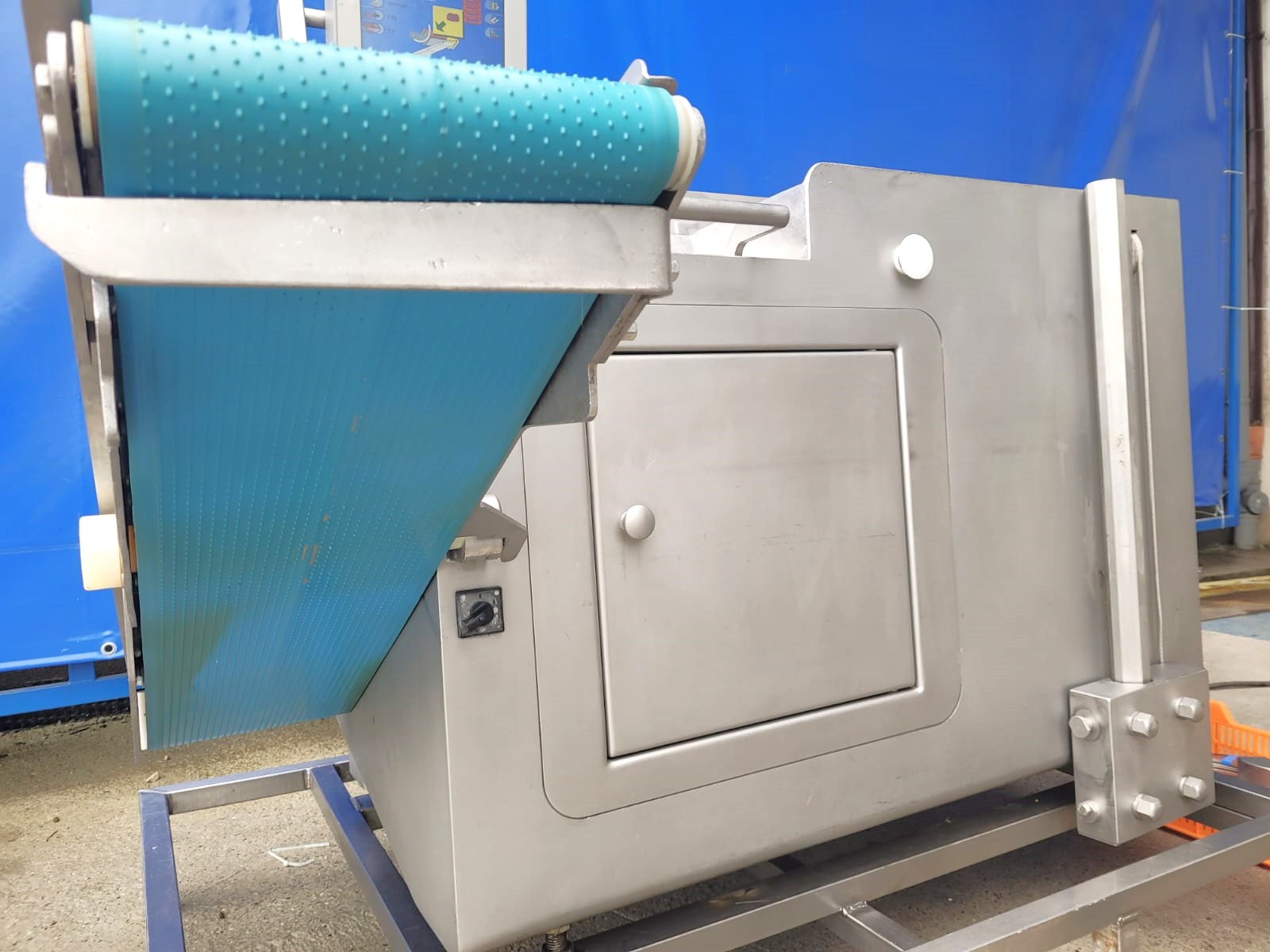 – belt that discharges the cut product into a standard meat bin with a capacity of 200 l and a height of 750 mm
