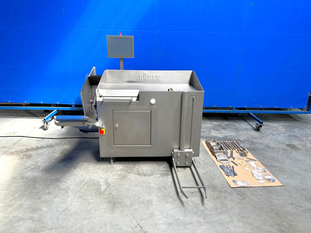 Used RÜHLE SR2 Turbo dicing machine is a machine for cutting fresh, cooked or lightly frozen meats, sausages, hams, cooked vegetables, fish and relevant types of cheese into cubes, bars or slices.
