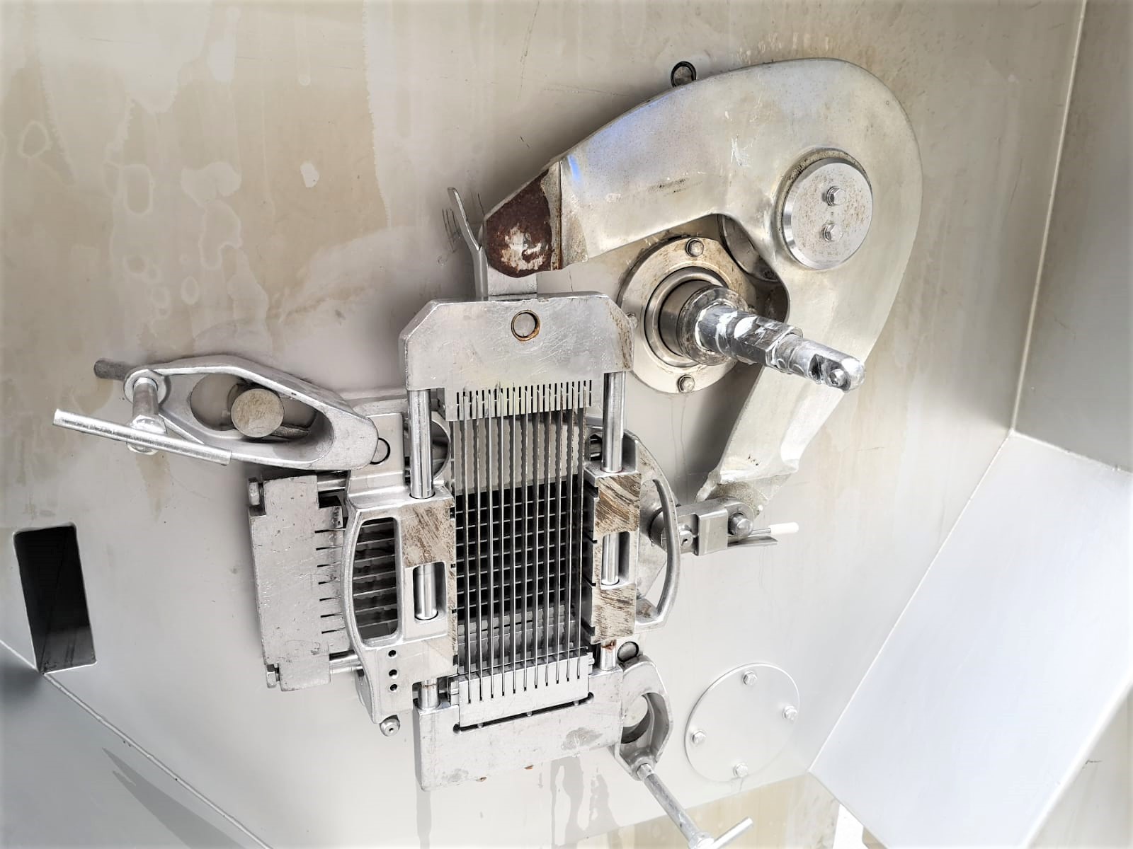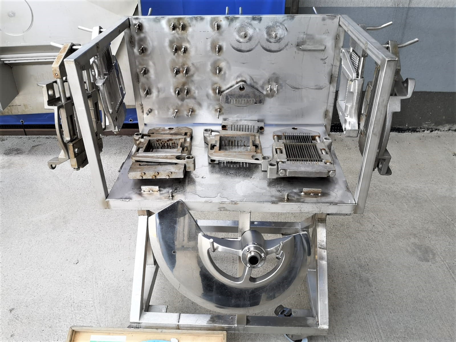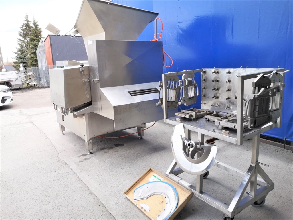 Used Treif Cubemat-E 221 is a high-performance machine. Perfect for medium and large production plants. It has a loading capacity of up to 200l meat bins. Comes with several sets of cutting nets and knives. The whole is made of acid-resistant steel, which guarantees the highest hygiene at work and easy maintenance.