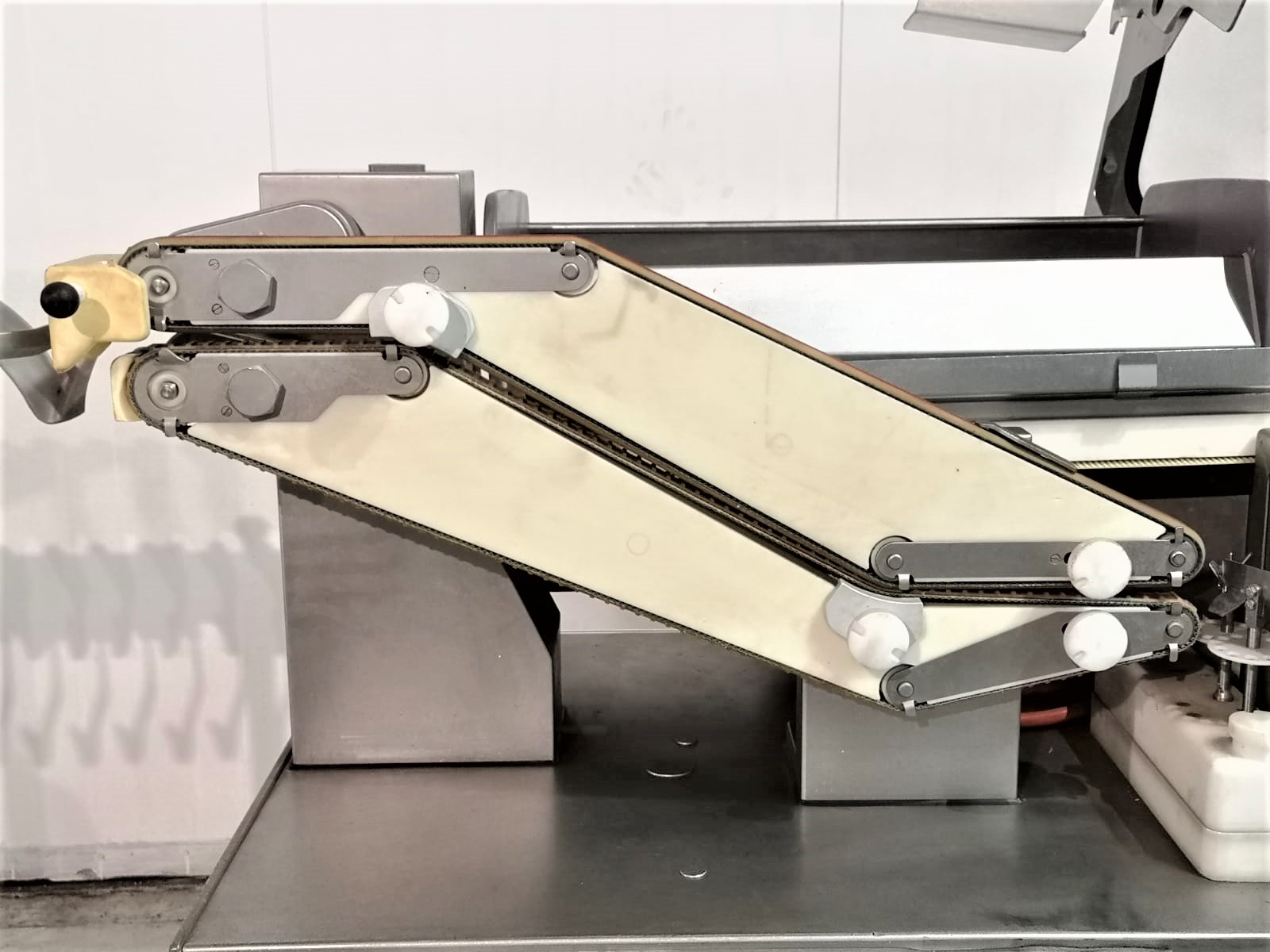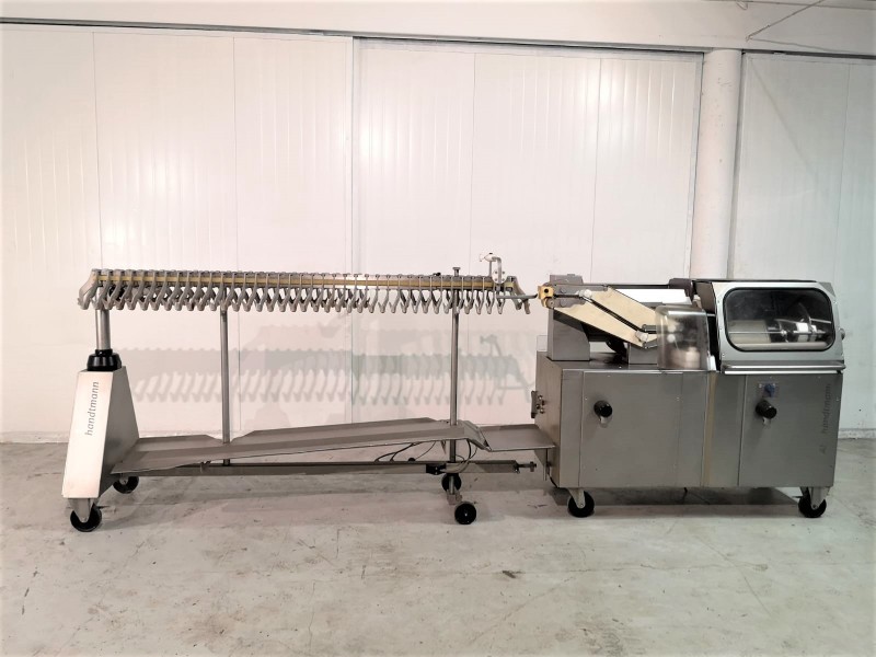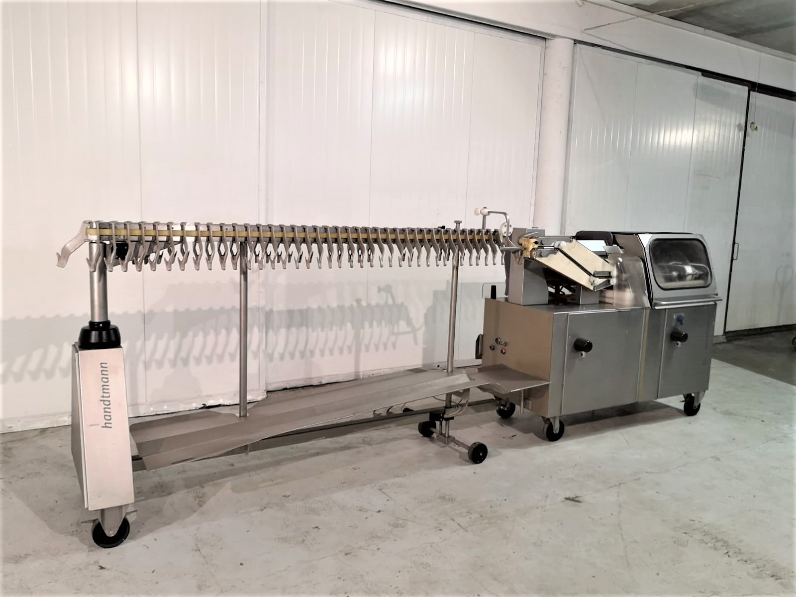 A Handtmann PVLH241 automatic-linker with hanging system recommended for automatic sausage production, portioning and linking with equal lengths hanging in casing, collagen, or peel-off casing in tandem with a Handtmann Vacuum Filler.