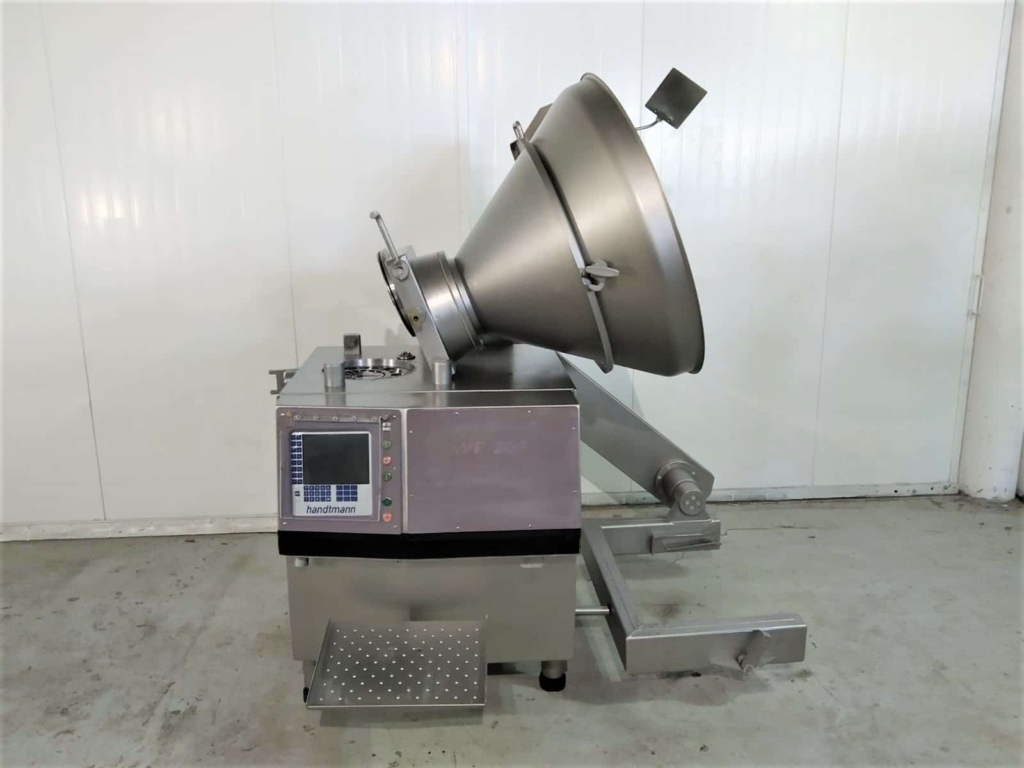 Vacuum Filler Handtmann VF200 B. Equipped with twister and grinding mechanism. It is prepared to work with Handtmann GD 93-3 grinding head. Equipped with integrated loader for standard 200l vemag carts.