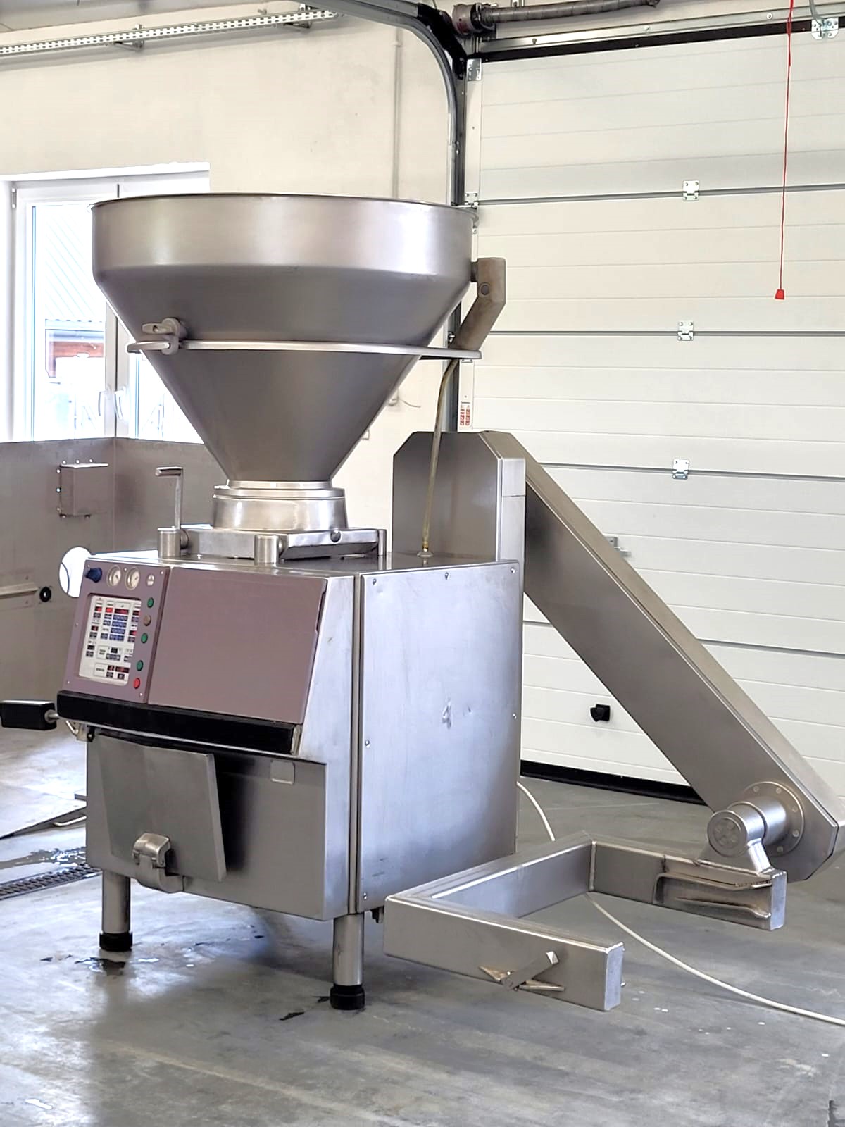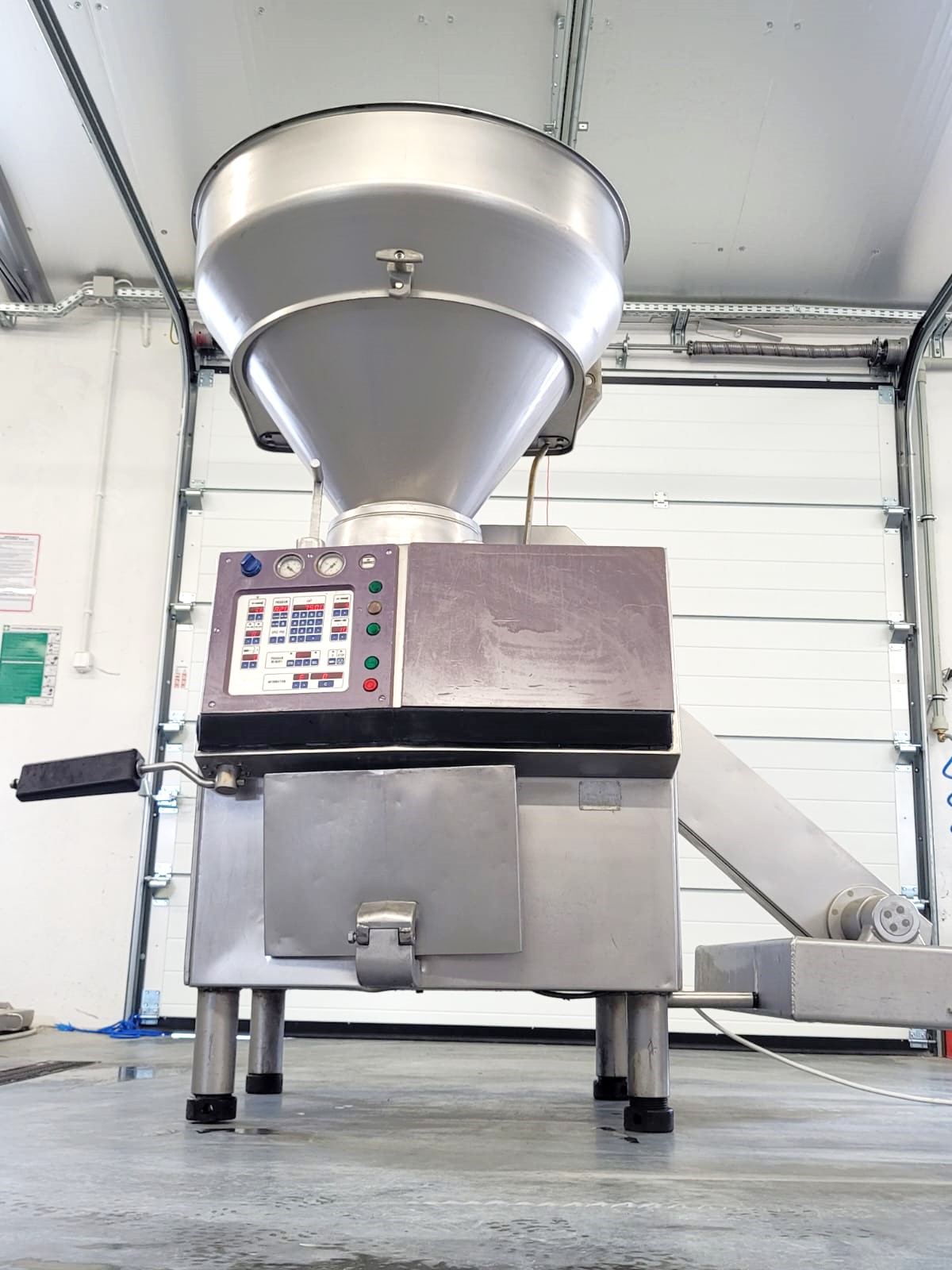 Used Handtmann VF 300B is a stuffer which offers a very high efficiency, with a filling capacity of up to 10,000 kg/h, making it suitable for large-scale production. The stuffer can handle a wide portioning range, allowing precise filling of products from 5 grams to 100,000 grams. It is equipped with standard 200-liter meat bins lift and has a filling pressure capability of up to 35 bar.