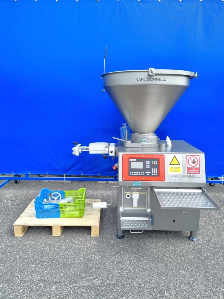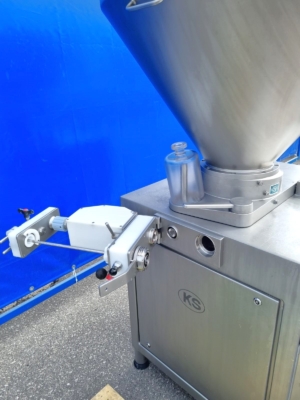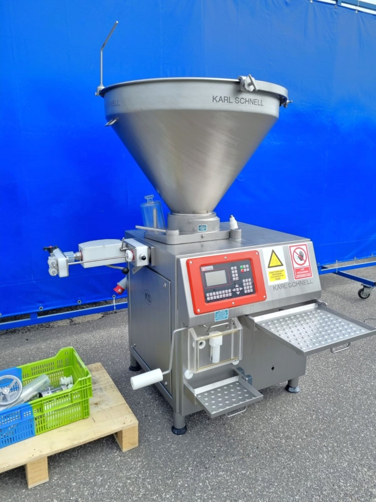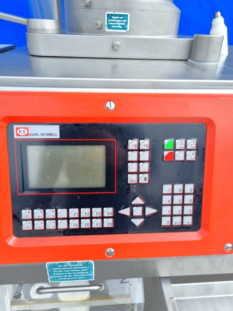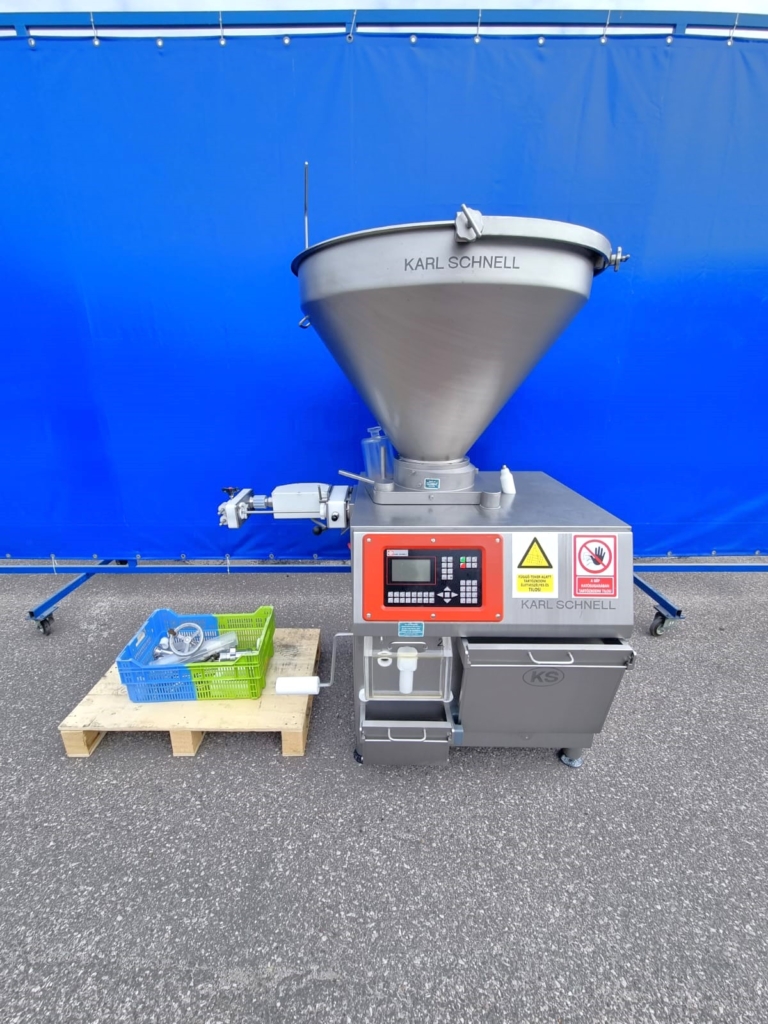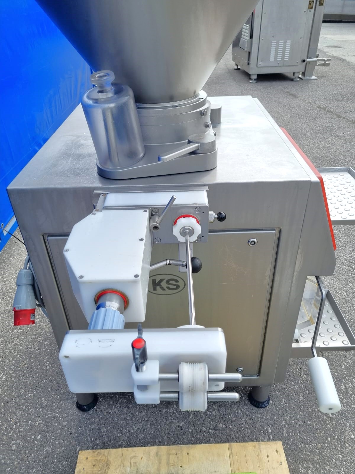 Used KS P10 SE series vacuum fillers are the basic machines for many applications. Universally suitable for the cost-efficient industrial production. The main application area is the dosing and filling of all types of low to high viscous masses. The most common applications are portioning of minced meat as well as the filling of raw, cooked and boiled sausage into casings.
