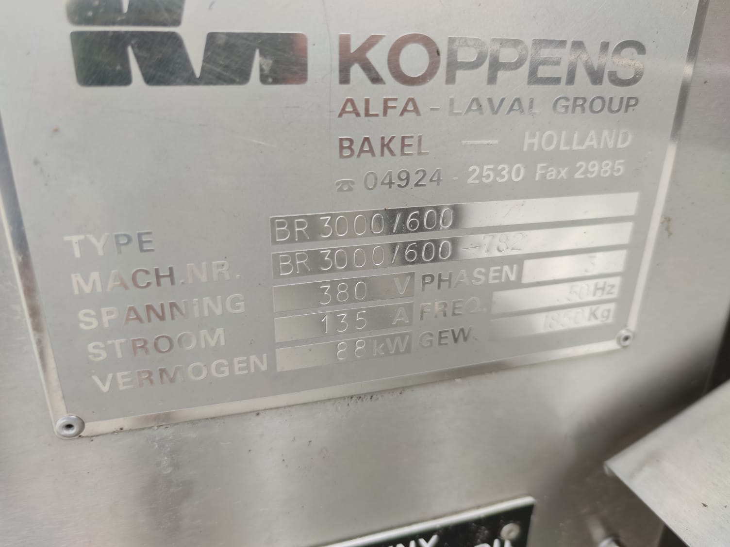 Manufacturer: GEA – CFS – Koppens