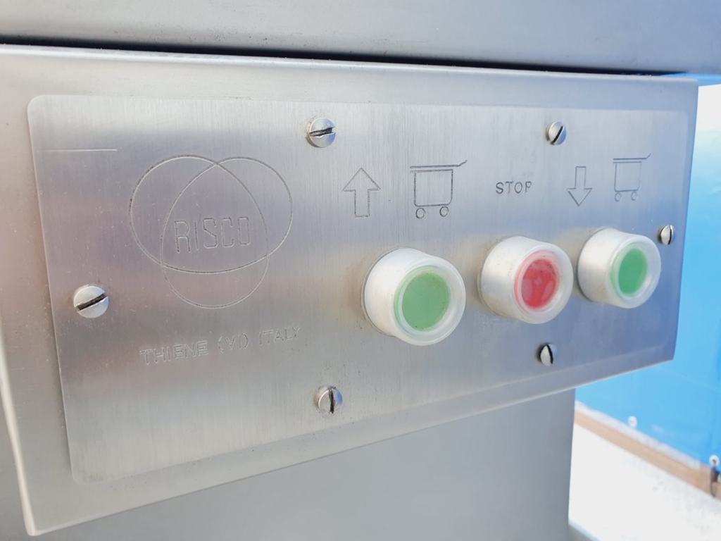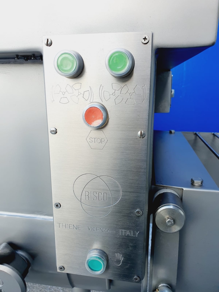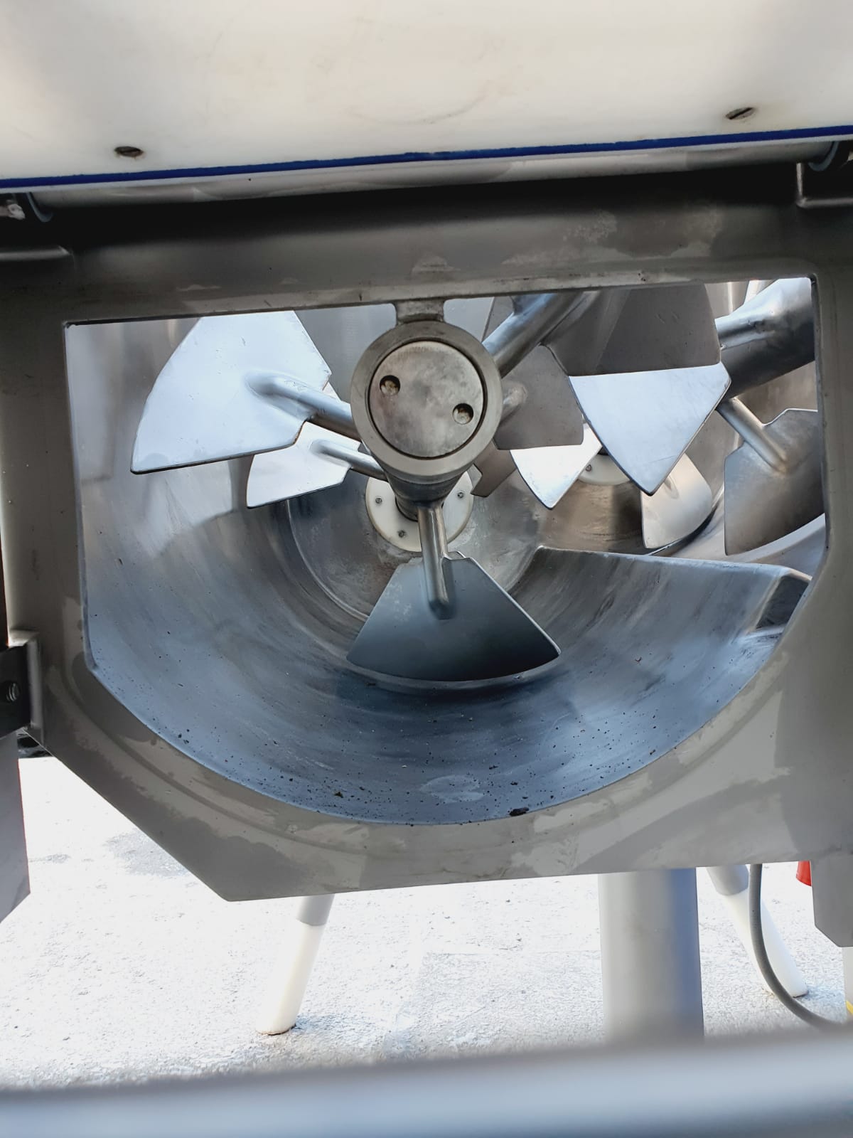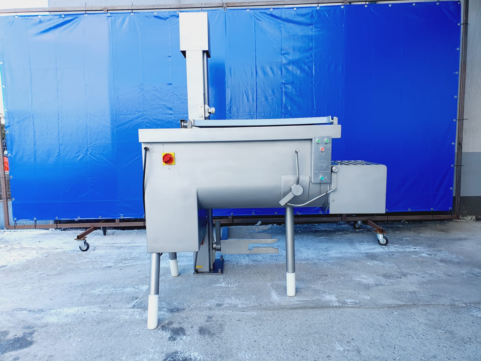 Used paddle mixer Risco RS 450. It can mix any type of meat product or any other mixable product in a very short time. The frame is made entirely of precision polished stainless steel. The combination of the mixing system with cross-over mixing vanes and front automatic product discharge allows for discharge directly into the trolley, emulsifier, transfer pump or directly into the screw conveyor.