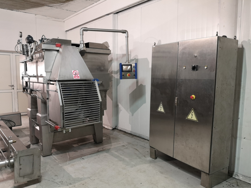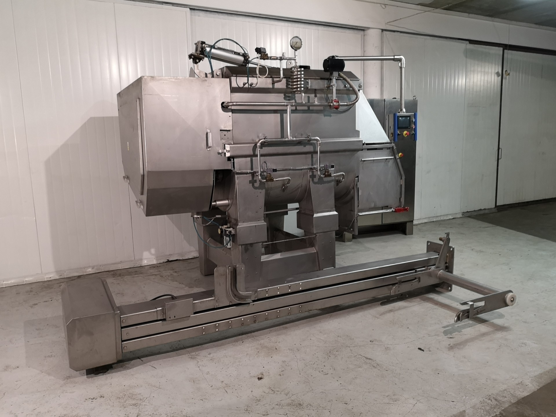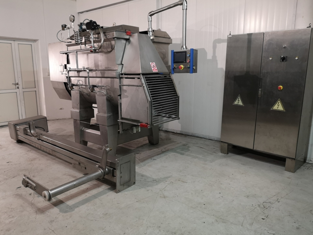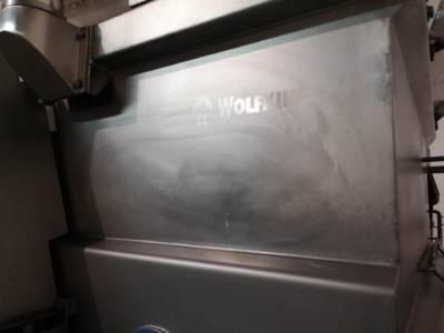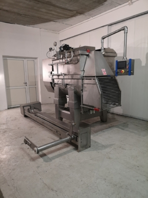 Wolfking TSMI 1250 Double paddle mixer with CO2 or Nitrogen Cooling. Completely stainless steel, robust construction. Cooling ensures the stickiness and plasticity of the products, which facilitates and consolidates the molding, thus maintaining the shape of the product during further processing. Cooling also reduces bacterial growth and extends the shelf life of the mixed product. PLC controller with fully programmable recipies for repeatable production.