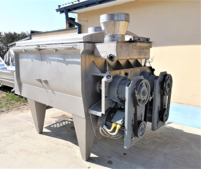 Used Simo meat mixer with a capacity of 1750l. Mixing system is based on double paddle mixers that guarantee high accuracy. Whole construction is made of the highest quality stainless elements, ensuring hygiene of work and easy cleaning.