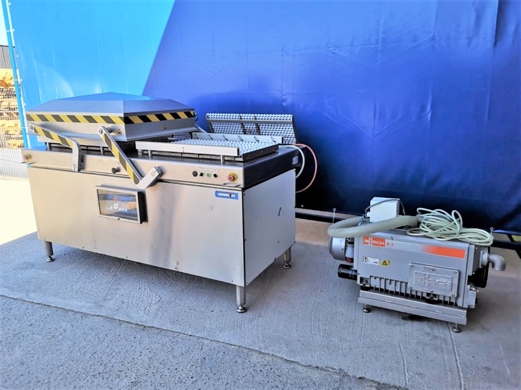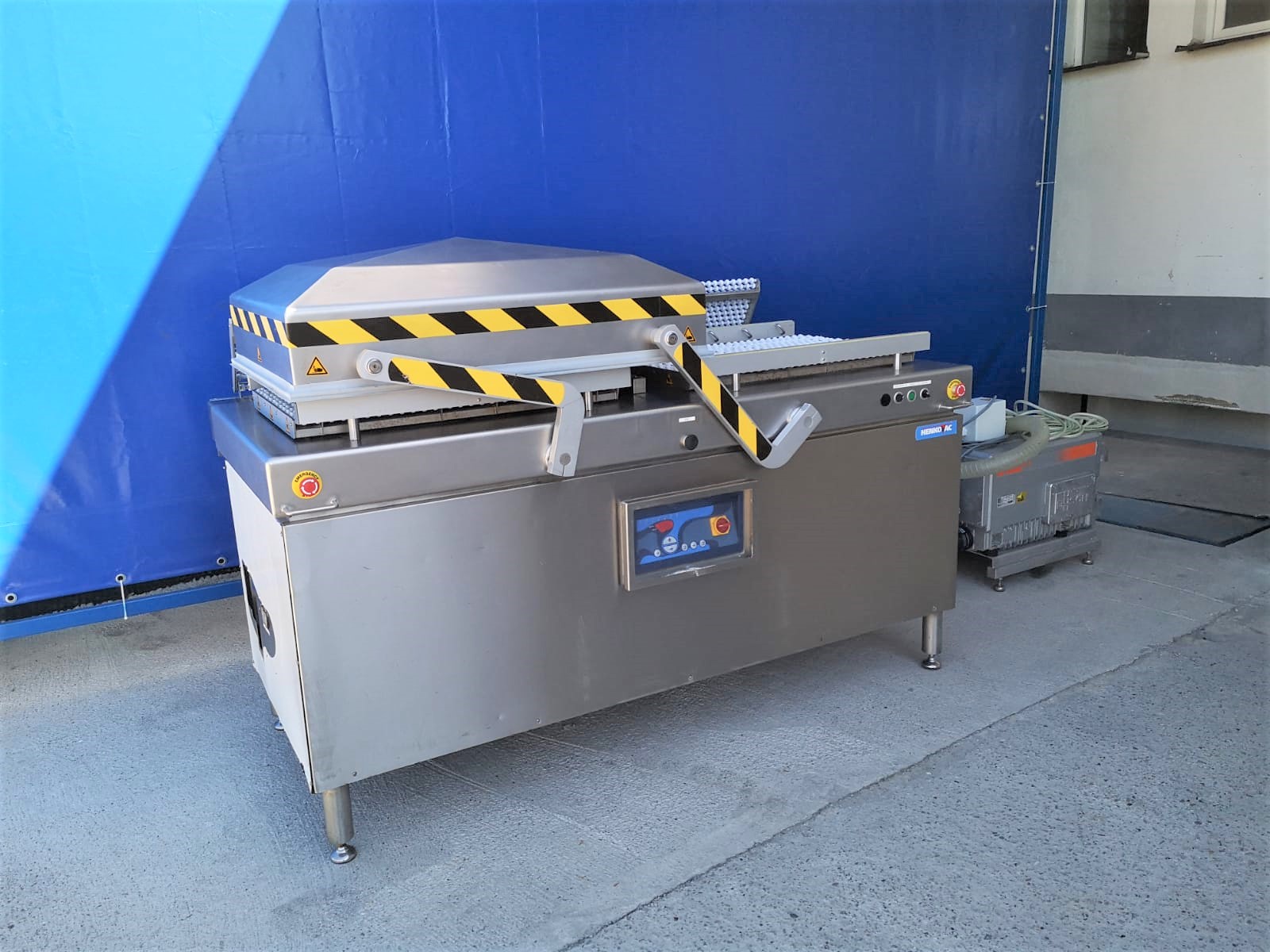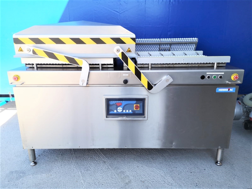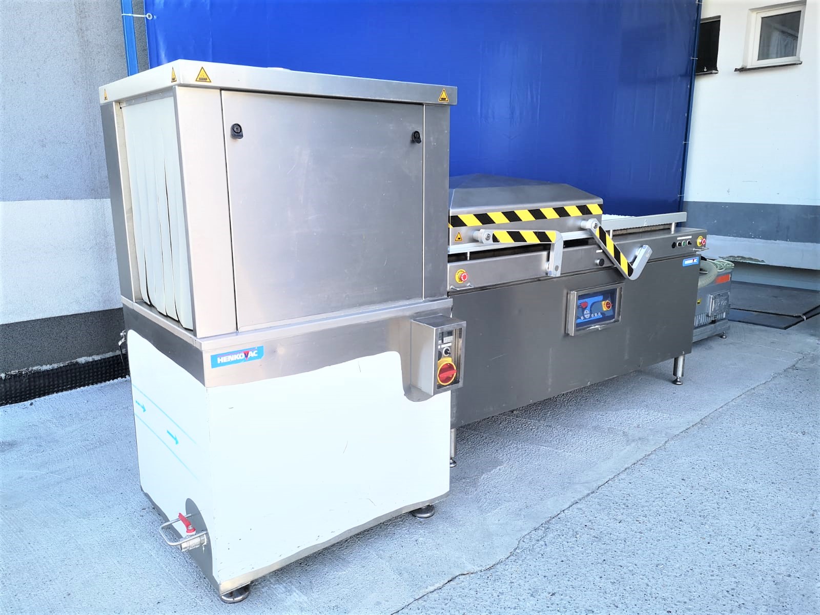 Used Henkovac line consists of a Henkovac A5000 double chamber vacuum packing machine and ADT-HV immersion tank. The line can be used for packing both food and industrial products.