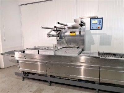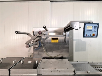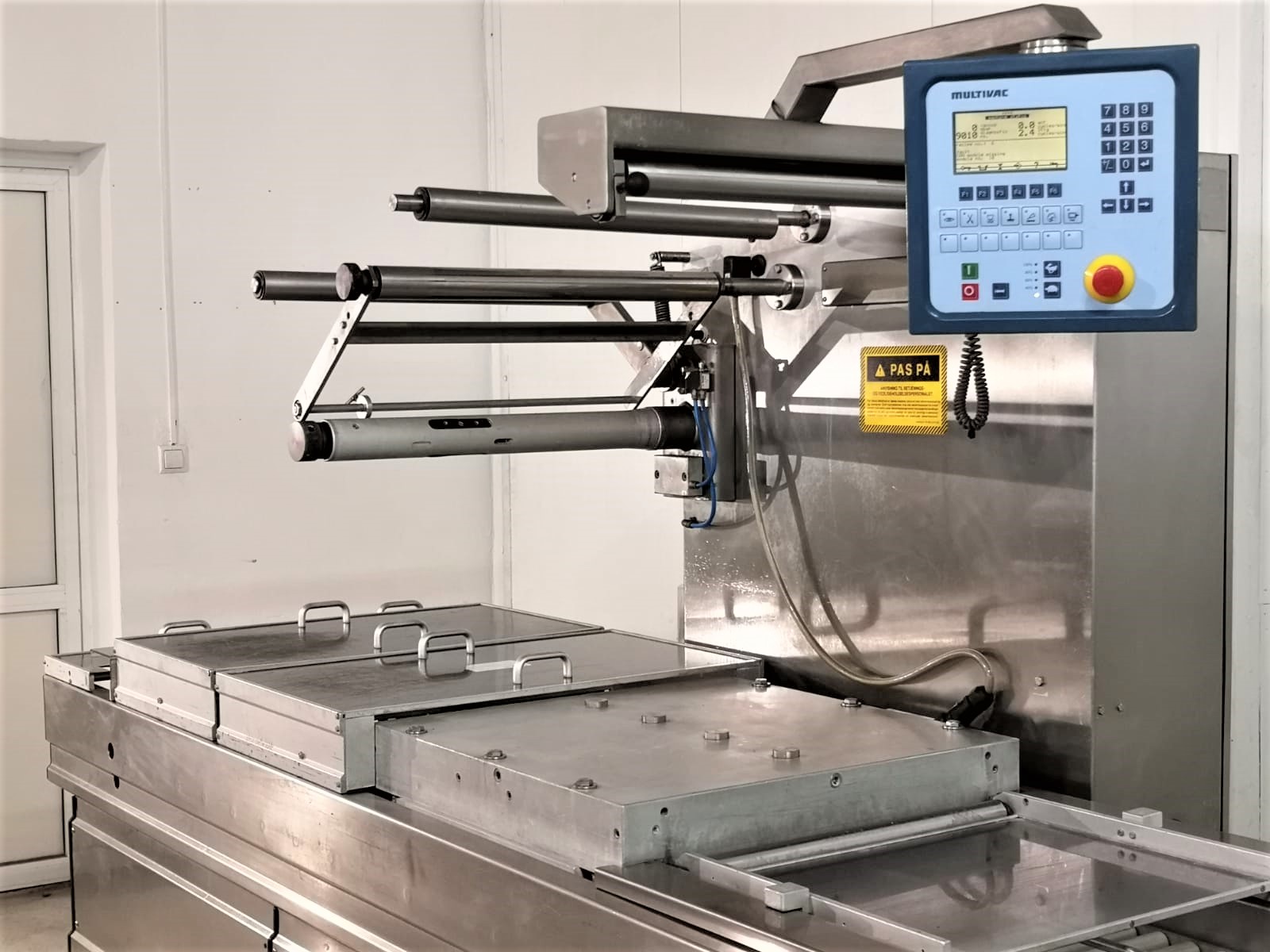 Multivac R530 is a rollstock machine of high efficiency. The packs can be filled manually or automatically from above, then are hermetically sealed with a top film and separated from each other