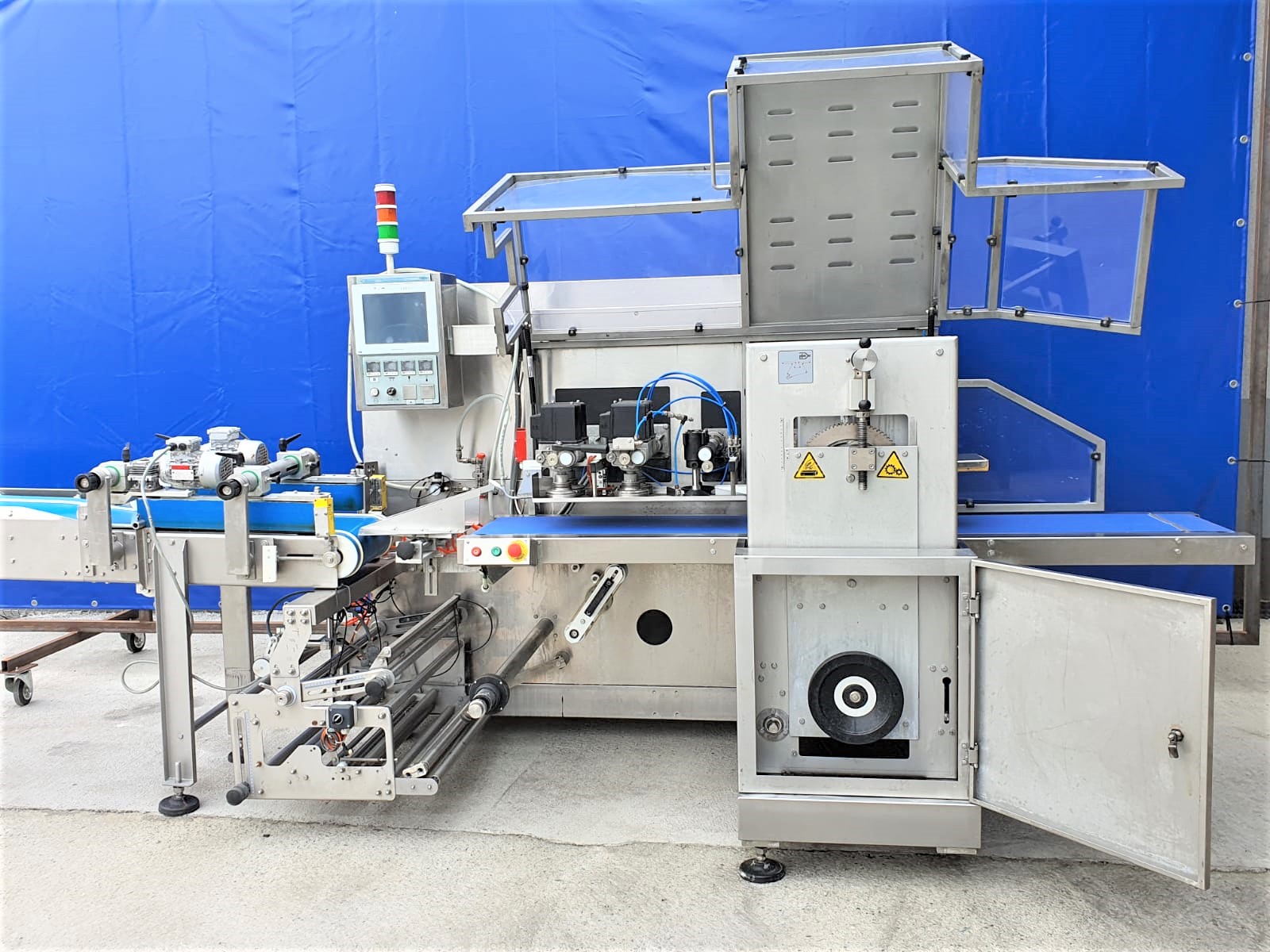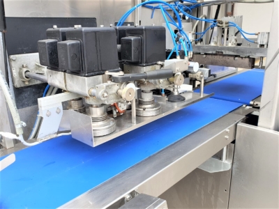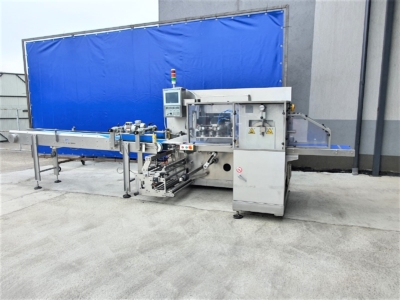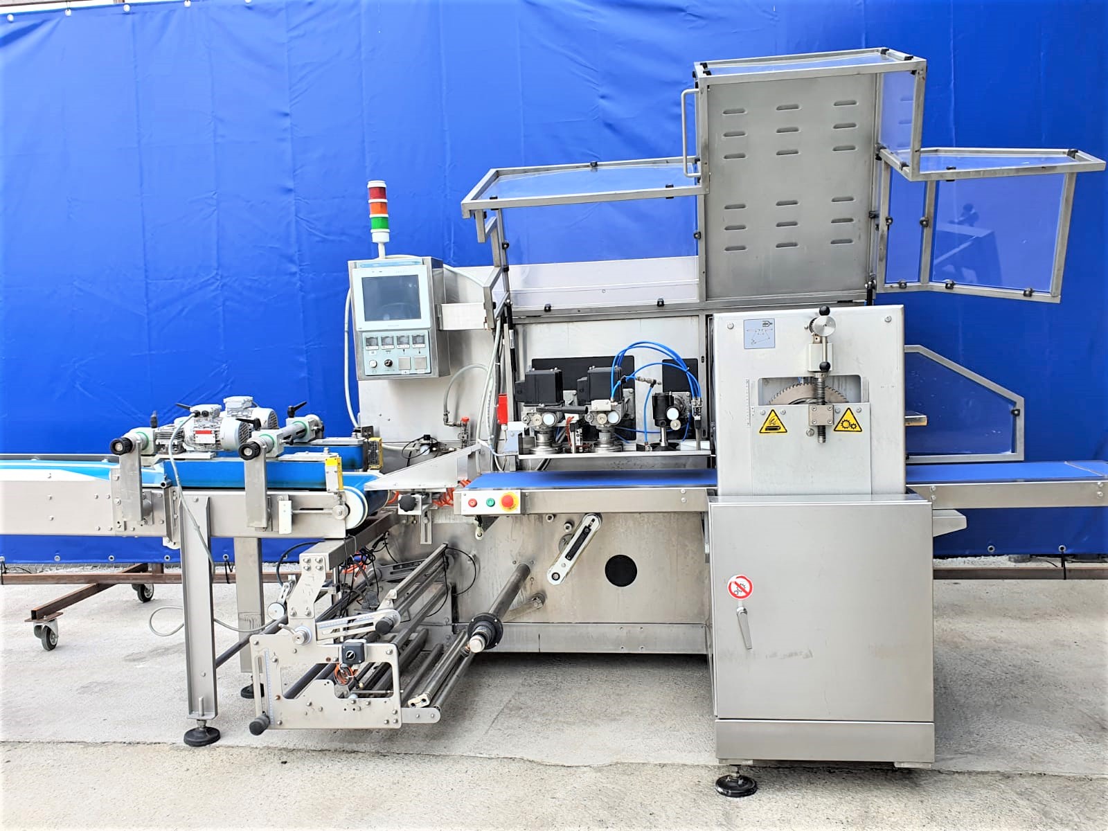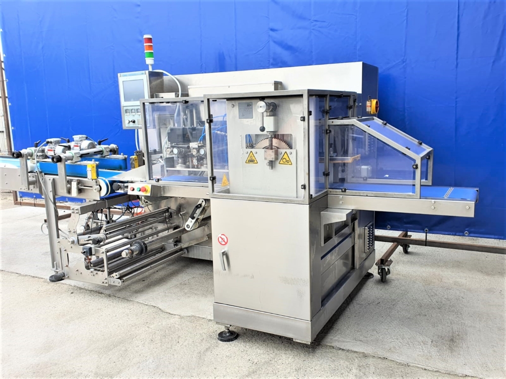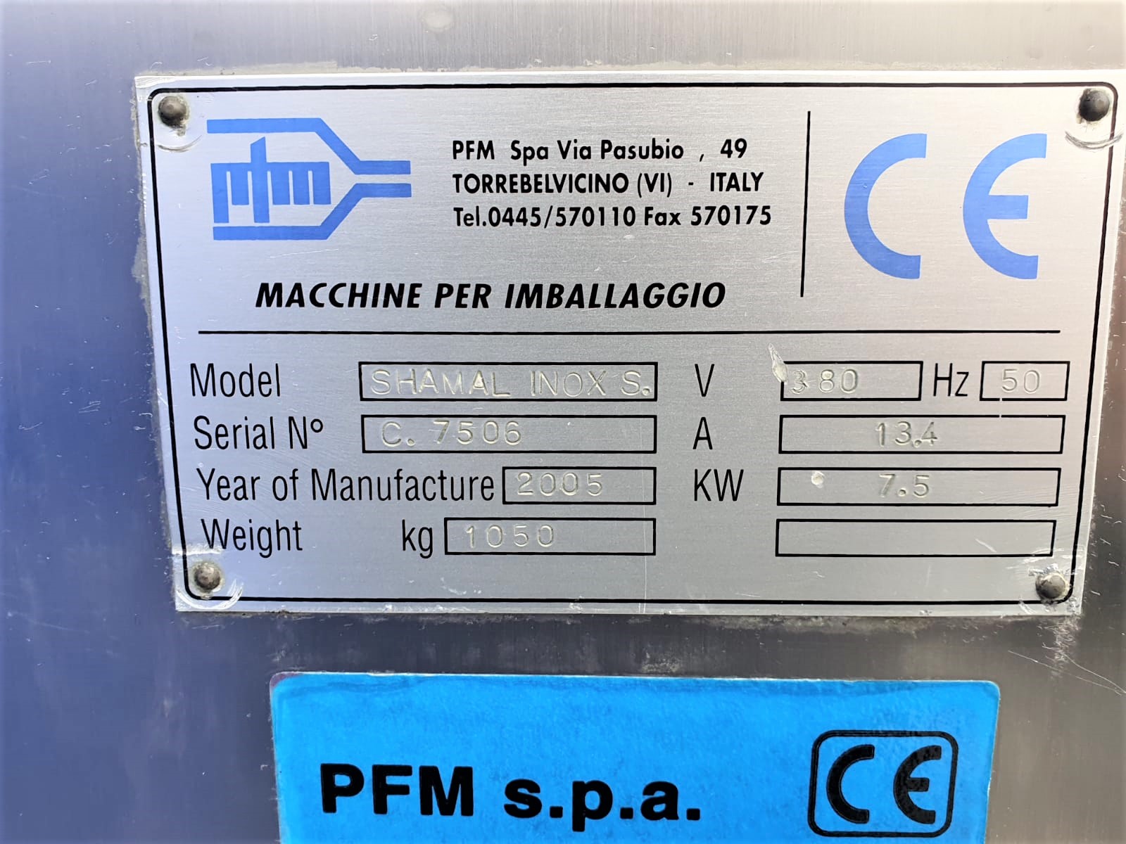 Used PFM Shamal. It is a high speed servo controlled MAP (Modified Atmosphere Packaging) flow-wrapping machine. Made of AISI 304 Stainless steel, with efficiency up to 120 packs per minute. PFM Shamal includes the LVA function which is the automatic adjustment of bag length according to the length of the product. Maximum product height of 120 mm.