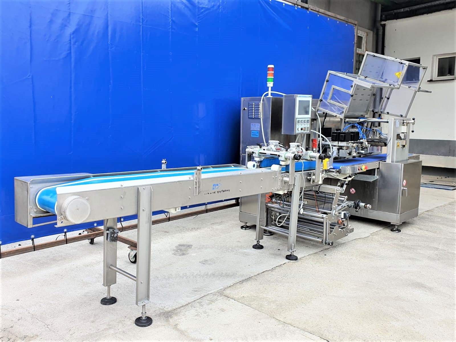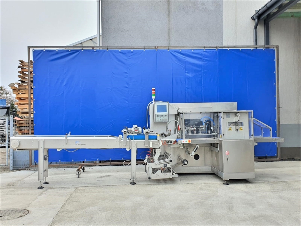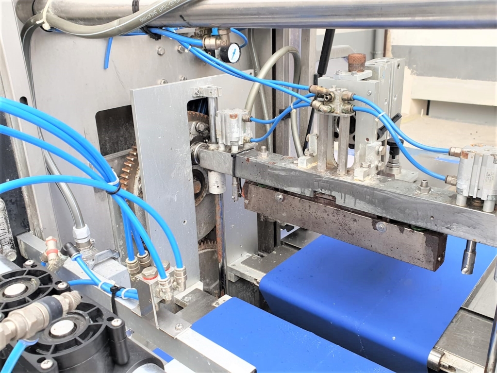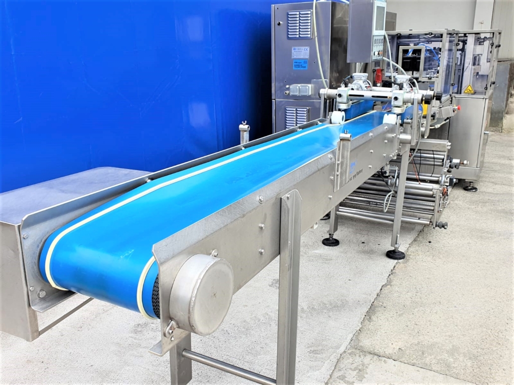 Used PFM Shamal. It is a high speed servo controlled MAP (Modified Atmosphere Packaging) flow-wrapping machine. Made of AISI 304 Stainless steel, with efficiency up to 120 packs per minute. PFM Shamal includes the LVA function which is the automatic adjustment of bag length according to the length of the product. Maximum product height of 120 mm.
