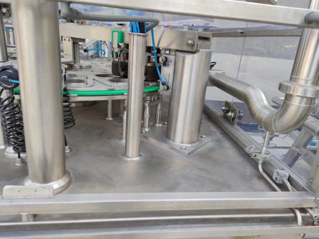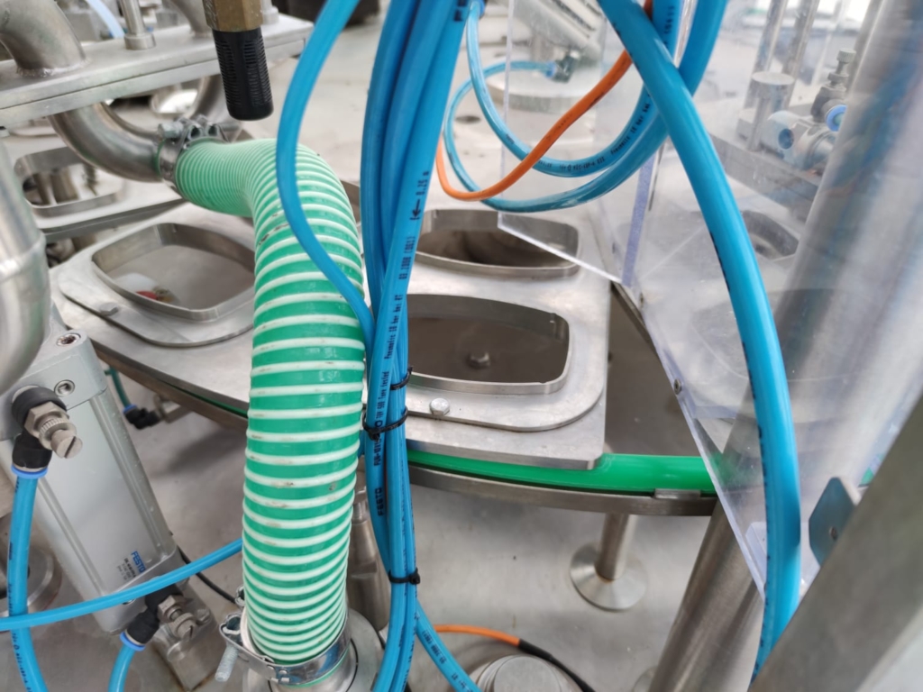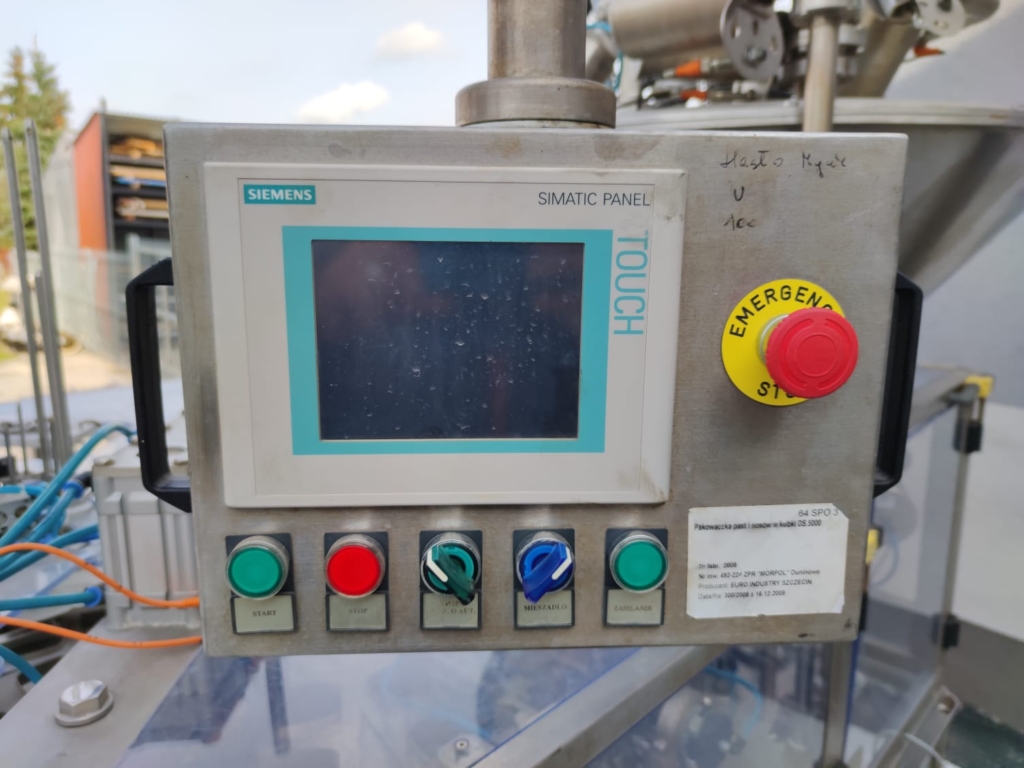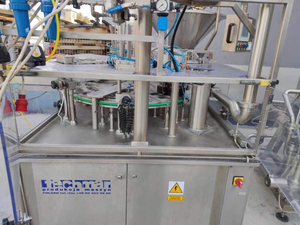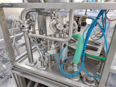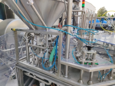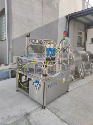 Line for automatic product mixing, dosing and thermal sealing of packages.