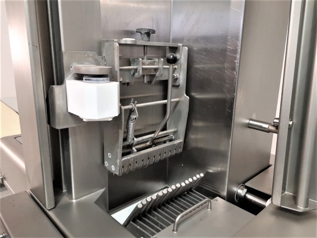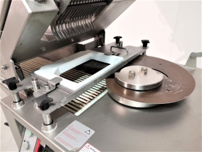 Ideal eqipment for cutting and stacking slices not only cooked and smoked meat products but also fresh meats and cheeses. Sliced product is supplied to the output conveyor of the machine and is spread out on trays for further packaging