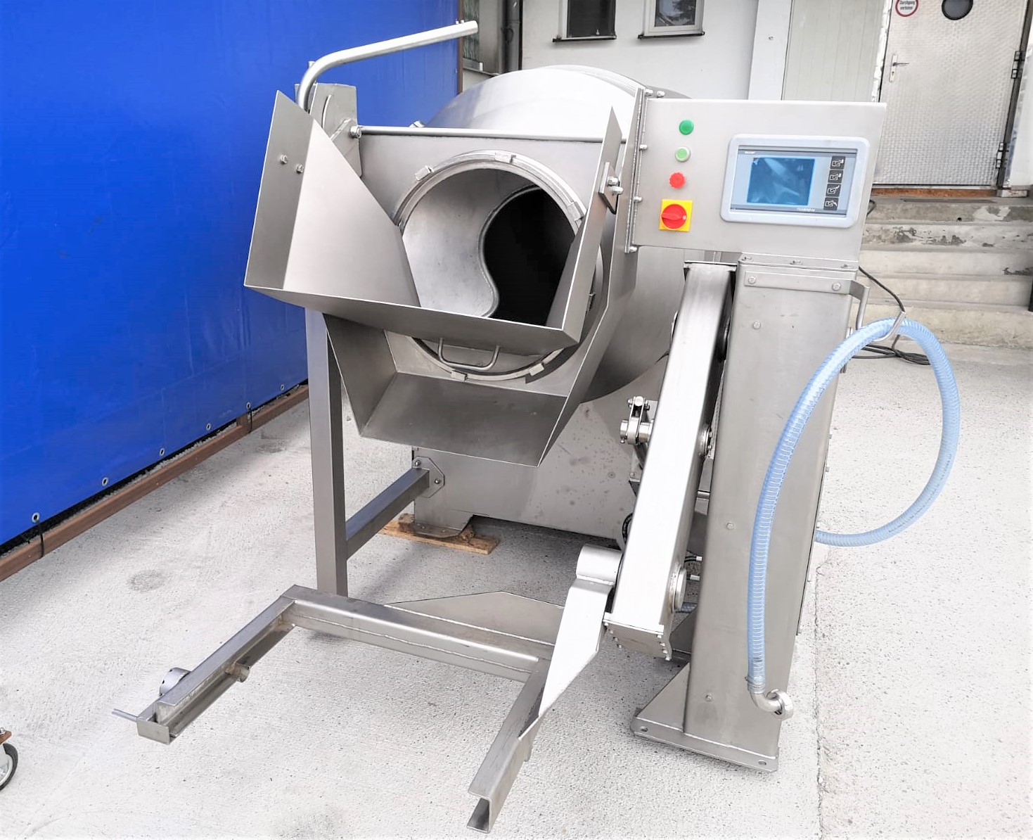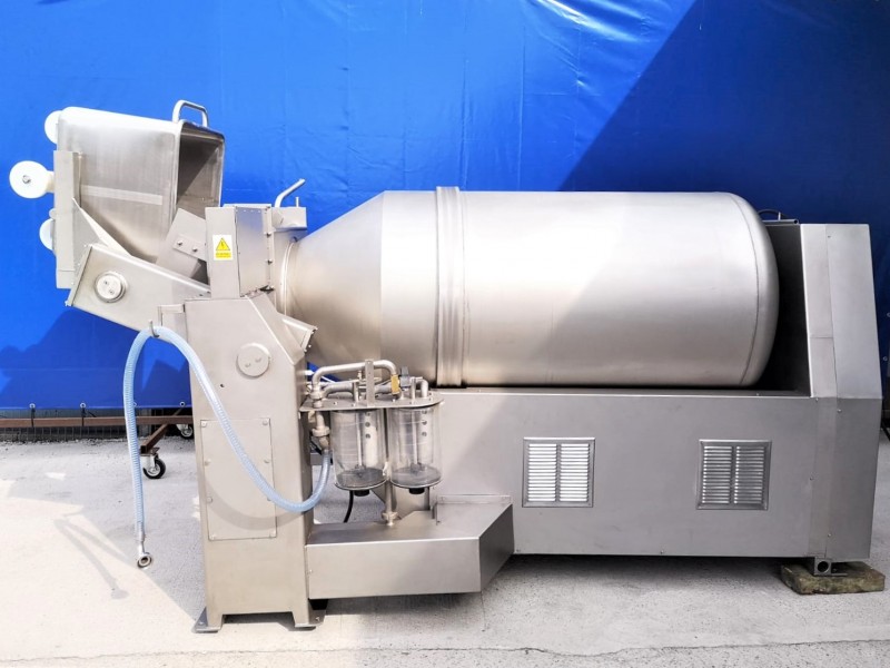 Used Inject Star Magnum 1500 vacuum tumbler with integrated loading for 200l meat bins. The device has the ability to smoothly regulate the rotation. it has the production capacity of 700 kg per batch. It is controlled by a microprocessor that maintains the given process parameters at a programmed level. Equipped with a Bush vacuum pump. The whole is made of acid-resistant steel, which guarantees the highest hygiene at work and ease of maintenance.