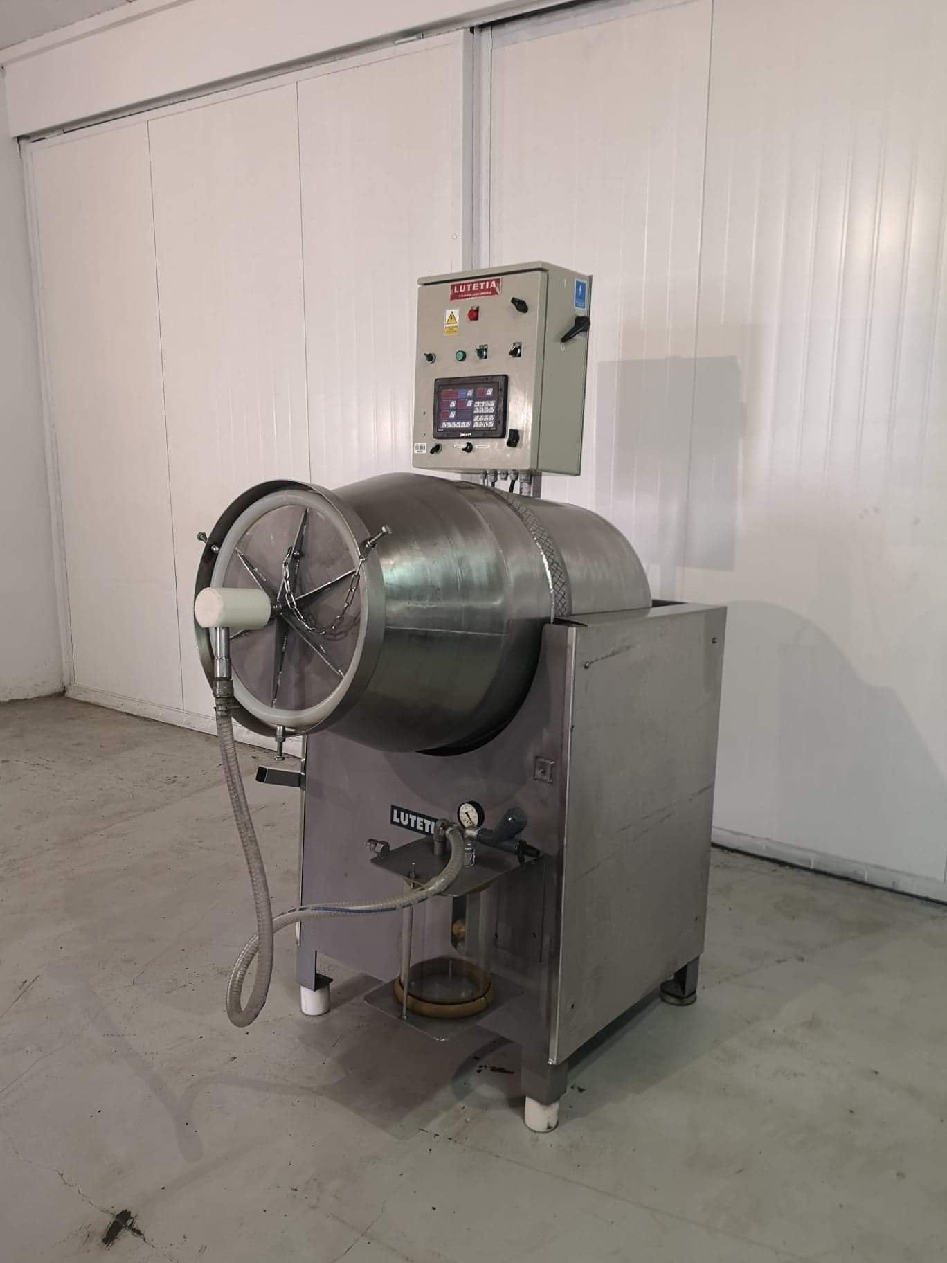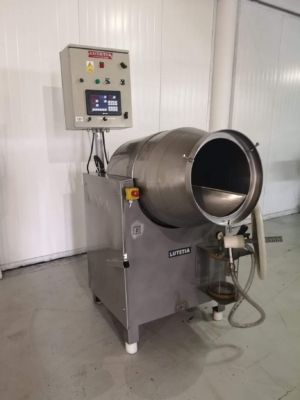 Vacuum tumbler Lutetia with batch capacity of 150 kg, fully made of stainless steel.