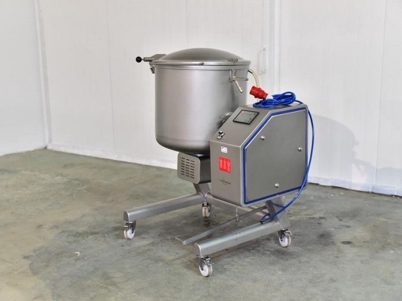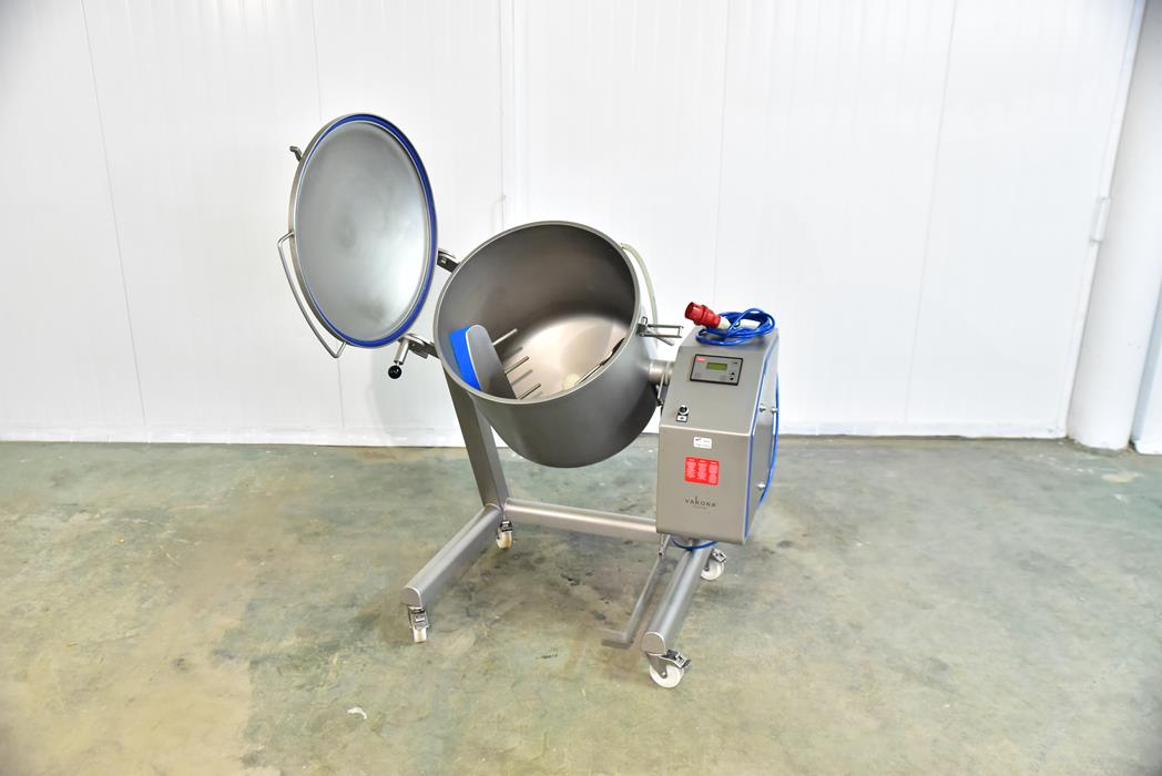 The Vakona VM 150 vacuum tumbler is a device made of stainless steel. Vakona 150 has capacity of 110 kg of product. Equipped with two agitators visible in the pictures. The device is in perfect condition.
