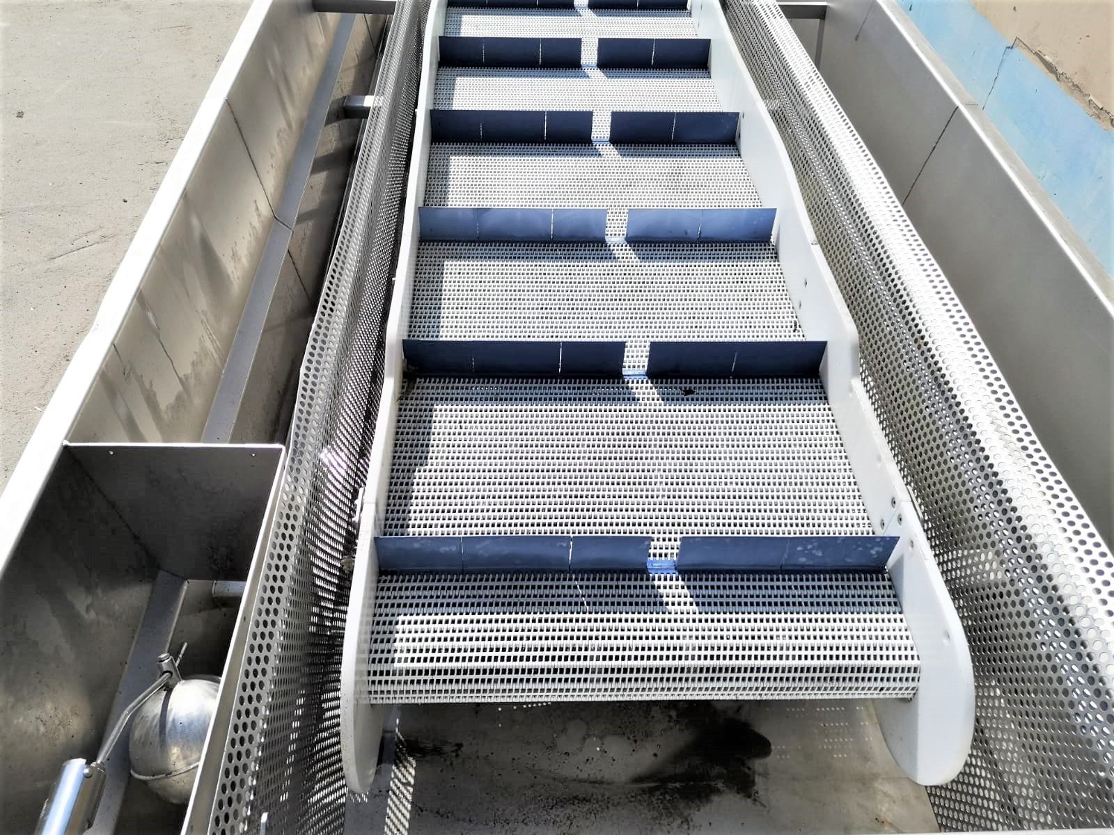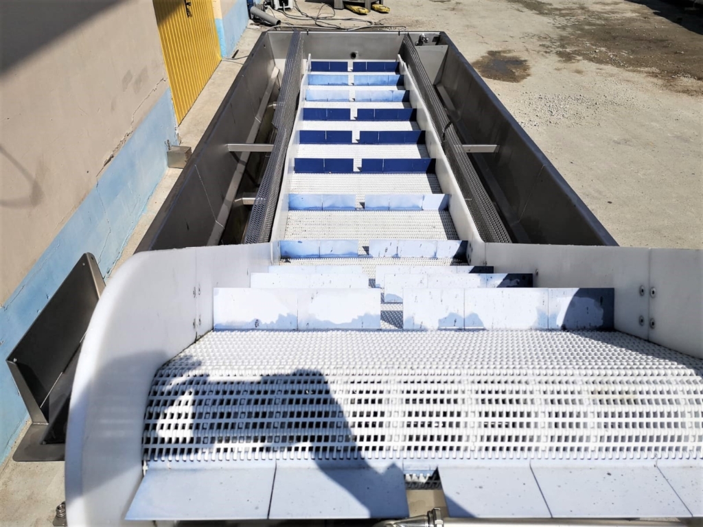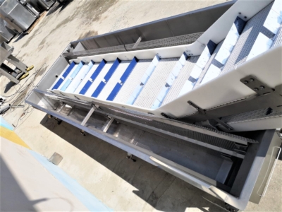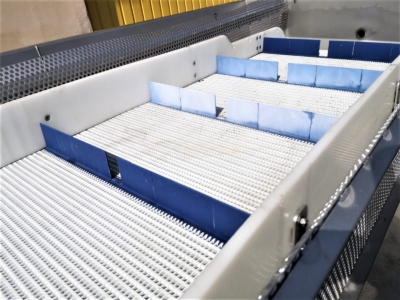 Cooling tunnel for cooling products after shrink packing. Belt width: 740 mm.