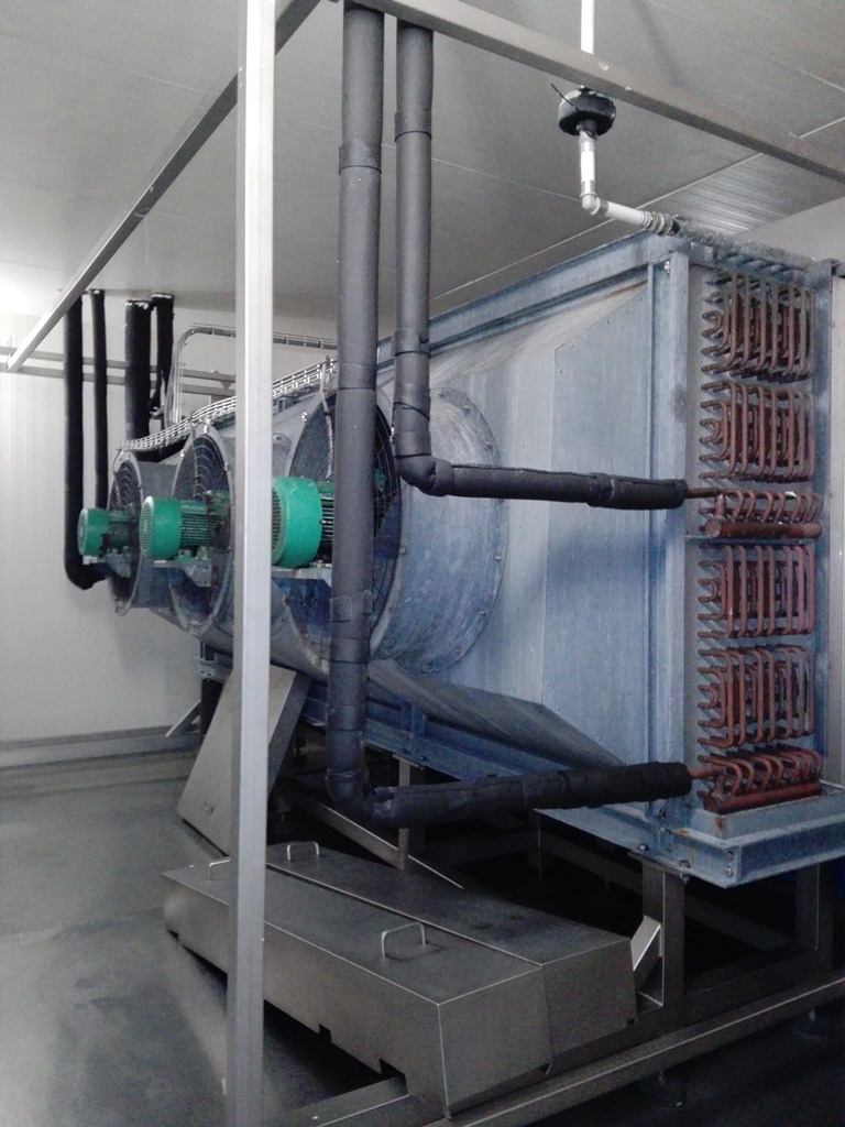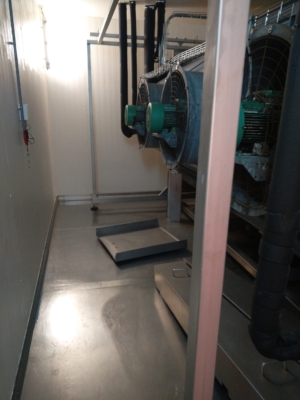 - Evaportator power: 80 kW, cooling agent: R404a, dimensions: 4480 x 1500 x 1730mm, fans: 3x 7,5kW