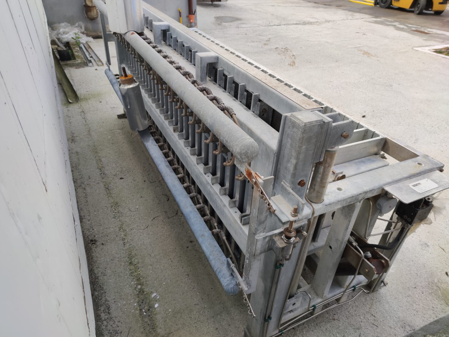 Used Jackstone Vertical Plate Freezer. The machine is used for industrial freezing of food products such as: meat, fish, fish fillets, soft fruit, shrimps, fruit and vegetable purees. The frozen product comes out in the form of ready blocks, which are then easily handled and stored.