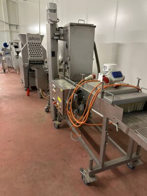 Mejore su producción de alimentos con nuestra completa línea de producción de hamburguesas, nuggets y patties. Desde el formado hasta la congelación IQF, esta línea cubre todas las etapas con equipos de primer nivel de ALCO, JBT y Schomaker.