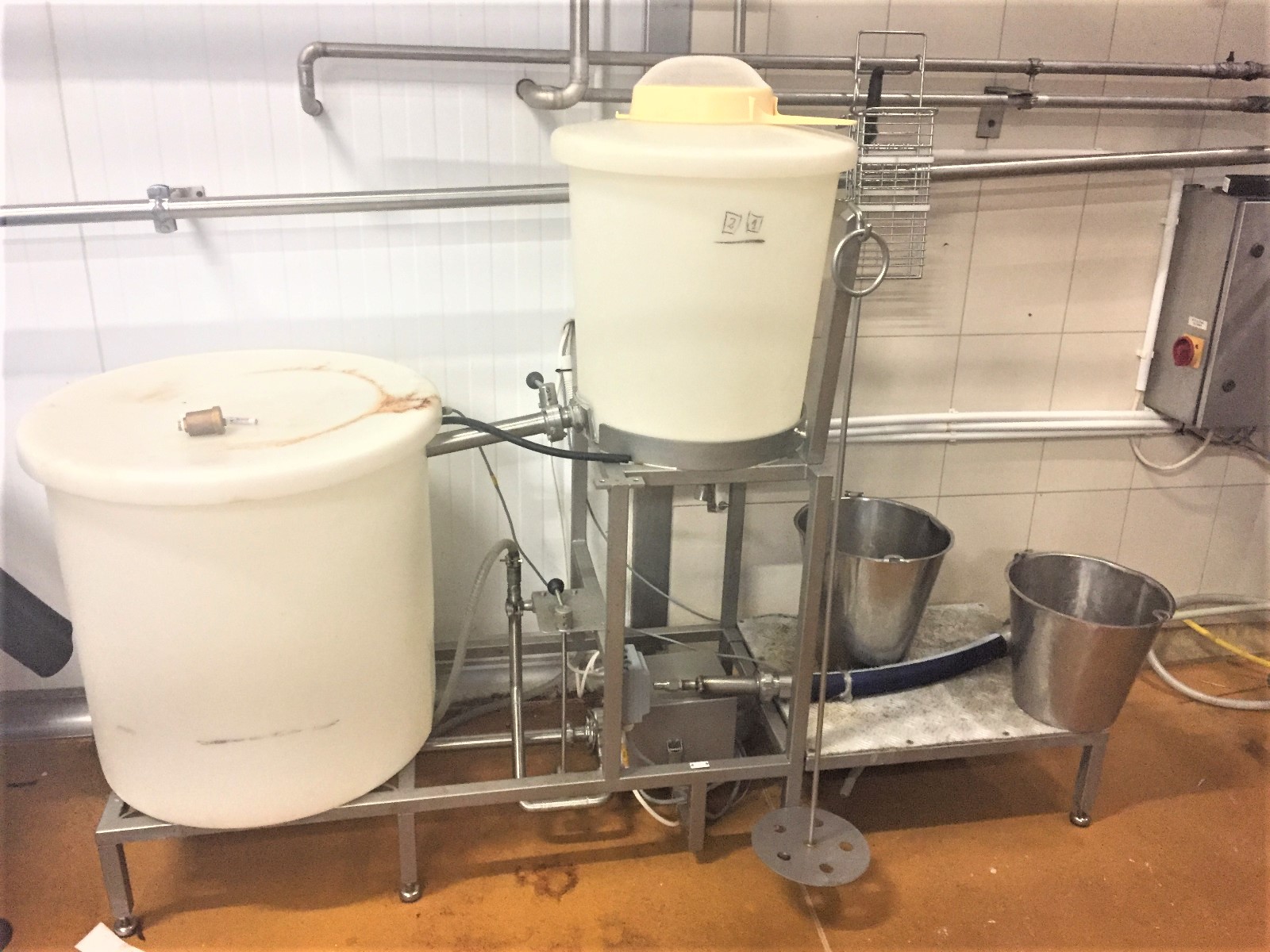 Sistema de recuperación de sangre comestible usado Anitec (Marel). Con una eficiencia de recogida y procesamiento de hasta 220 cerdos por hora.