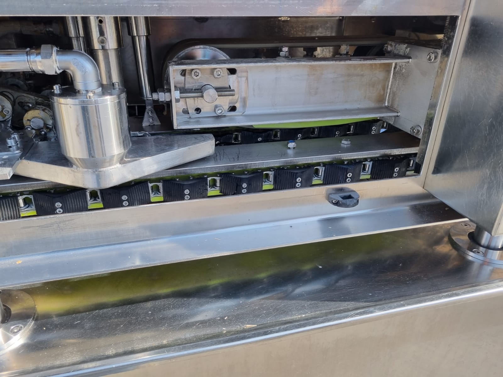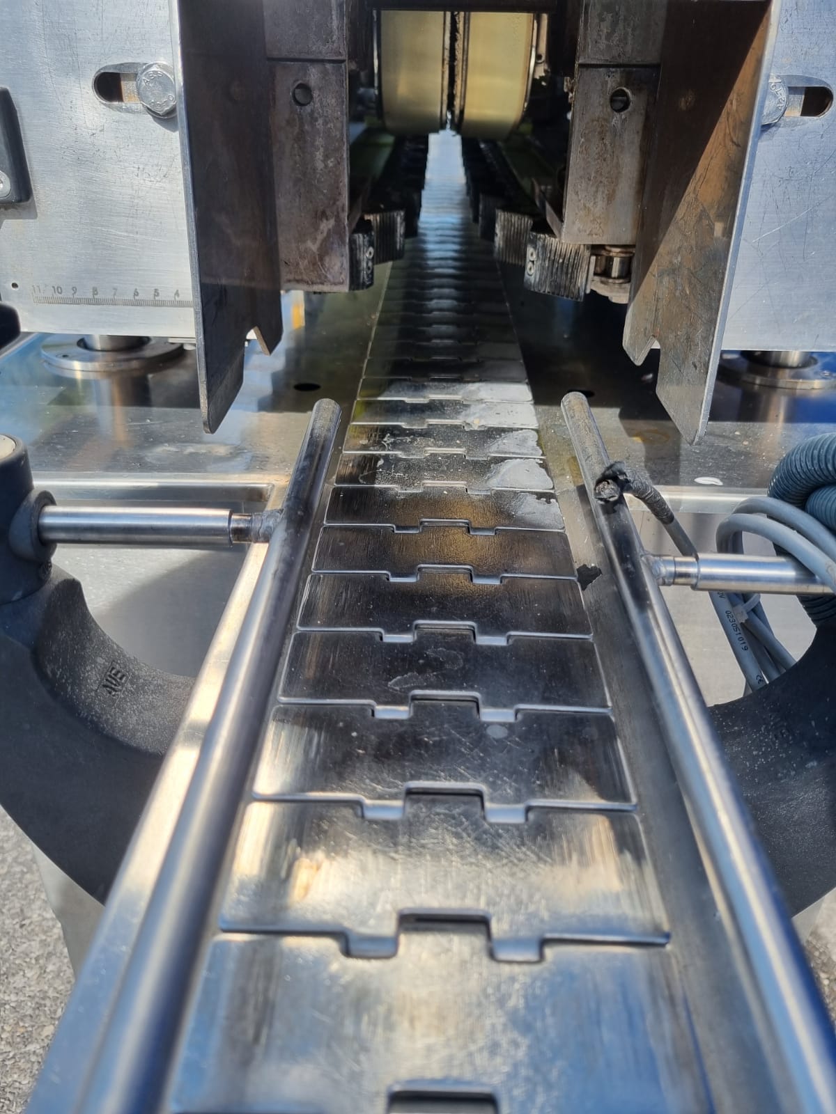 Sistema ACT (Tracción por cadena antideslizante), para trabajar con envases cubiertos de aceite o cualquier otro soporte resbaladizo.