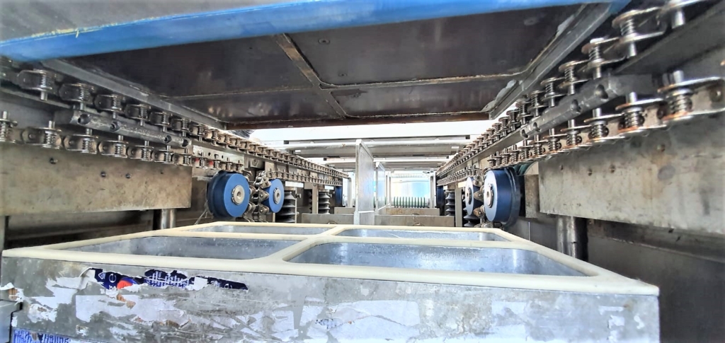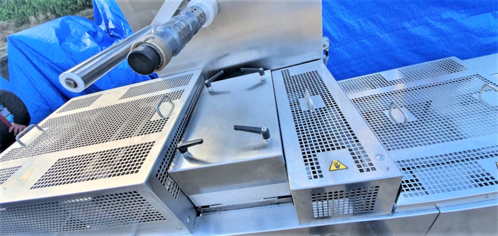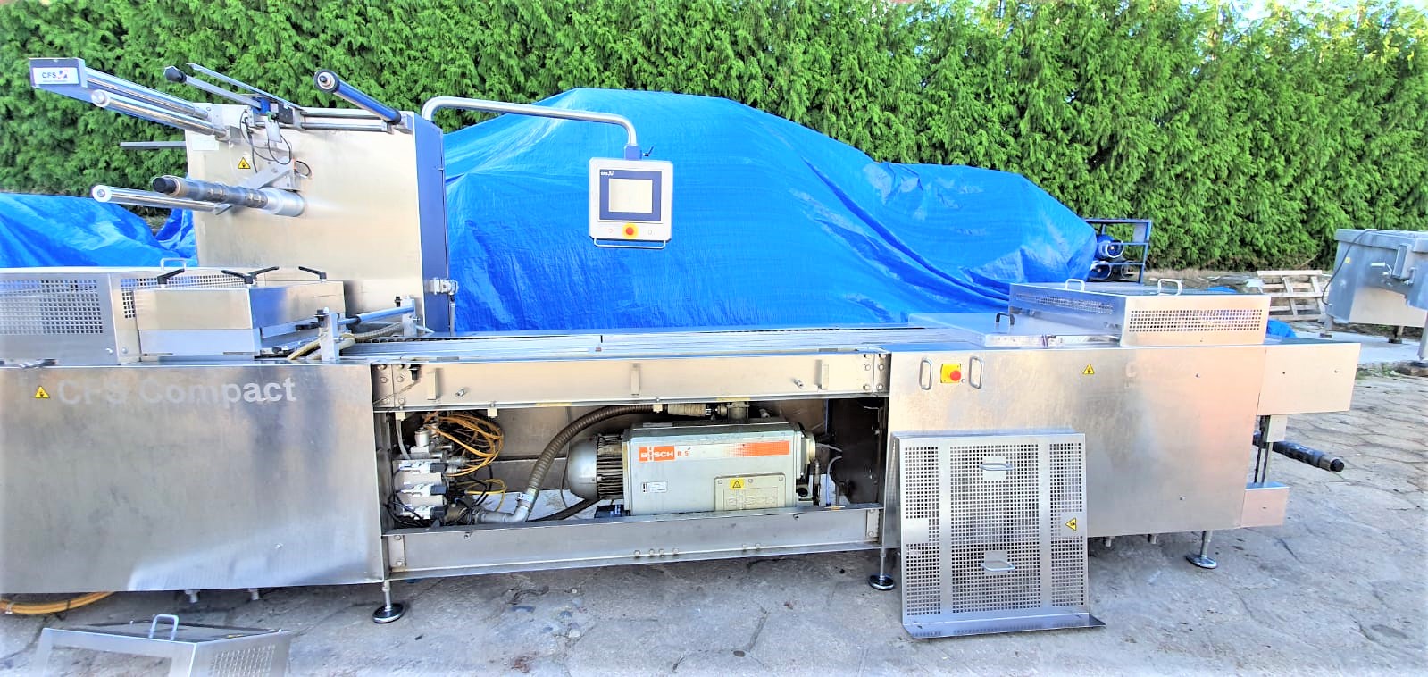 CFS Compact 420 usada. Esta máquina es una línea automática profesional de termoformado, que se utiliza para el envasado al vacío de casi todo tipo de productos cárnicos, pescados y mariscos, quesos, ensaladas, verduras, frutas, confitería y otros productos alimentarios.
