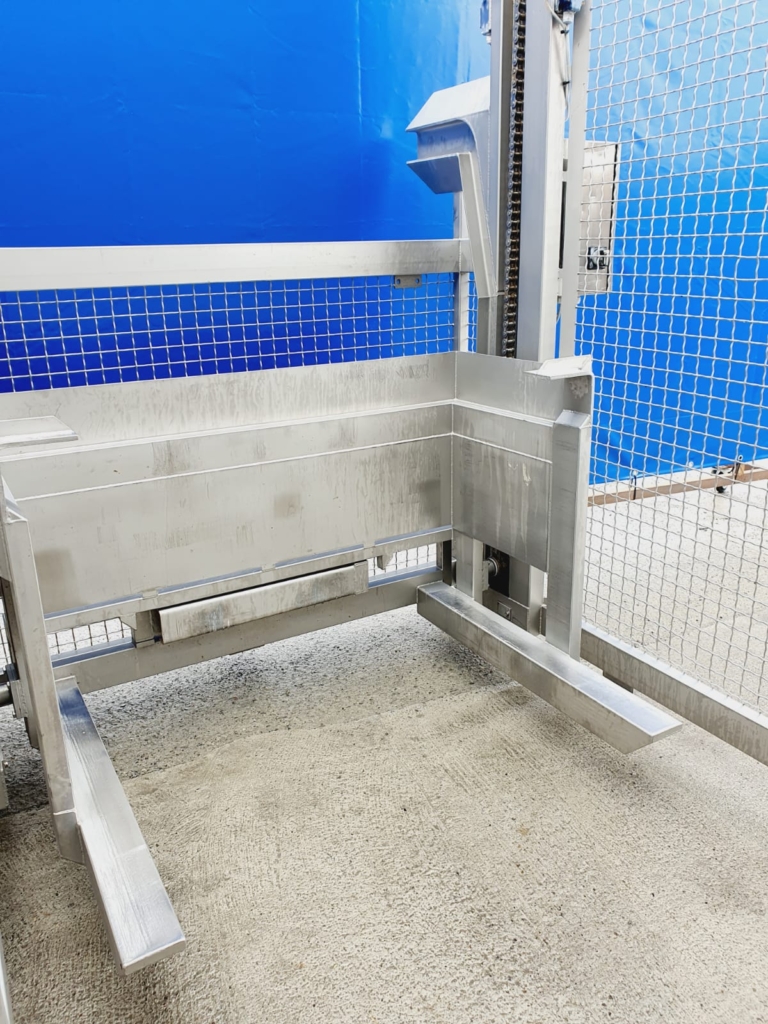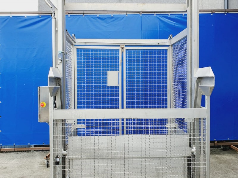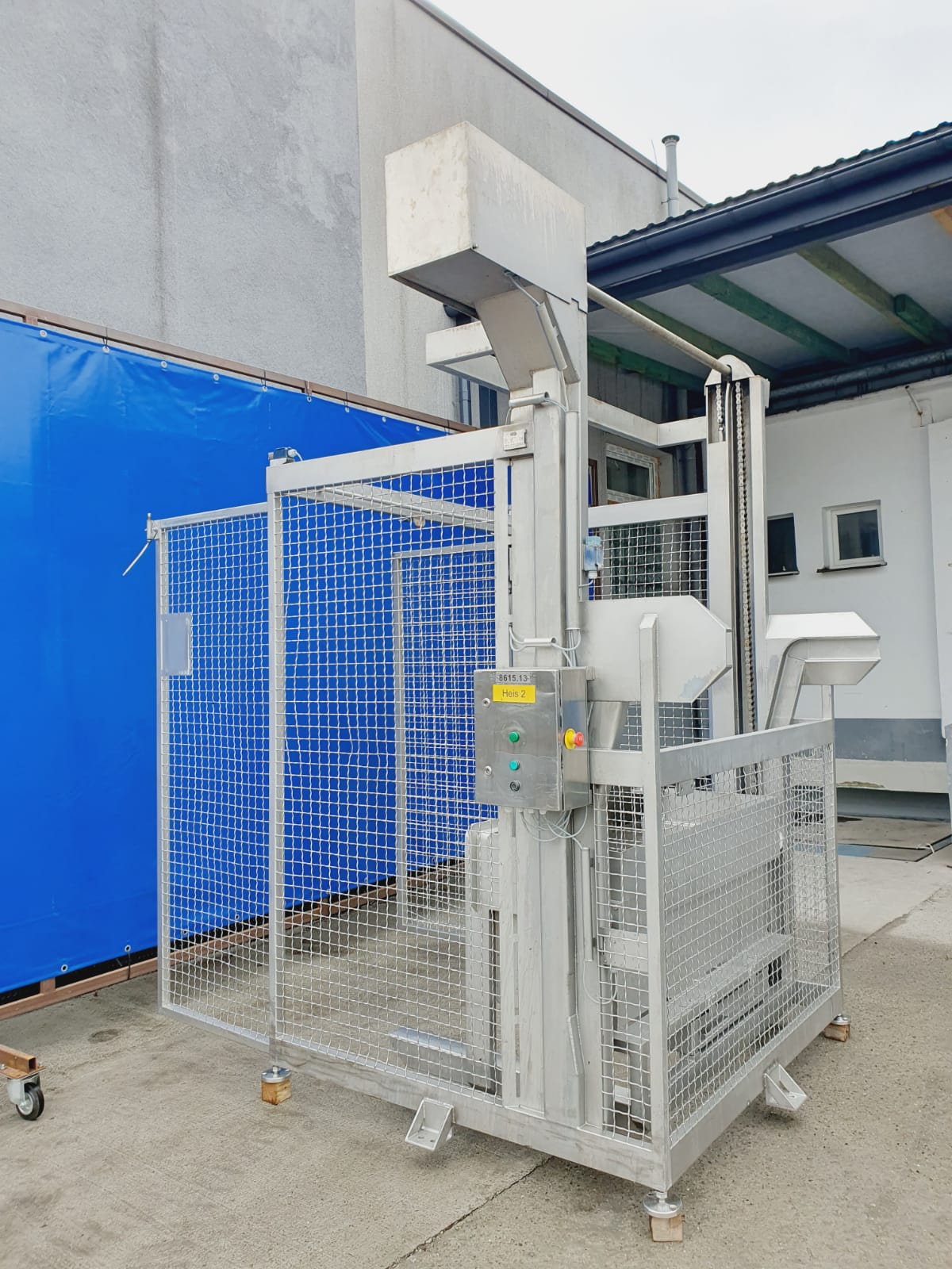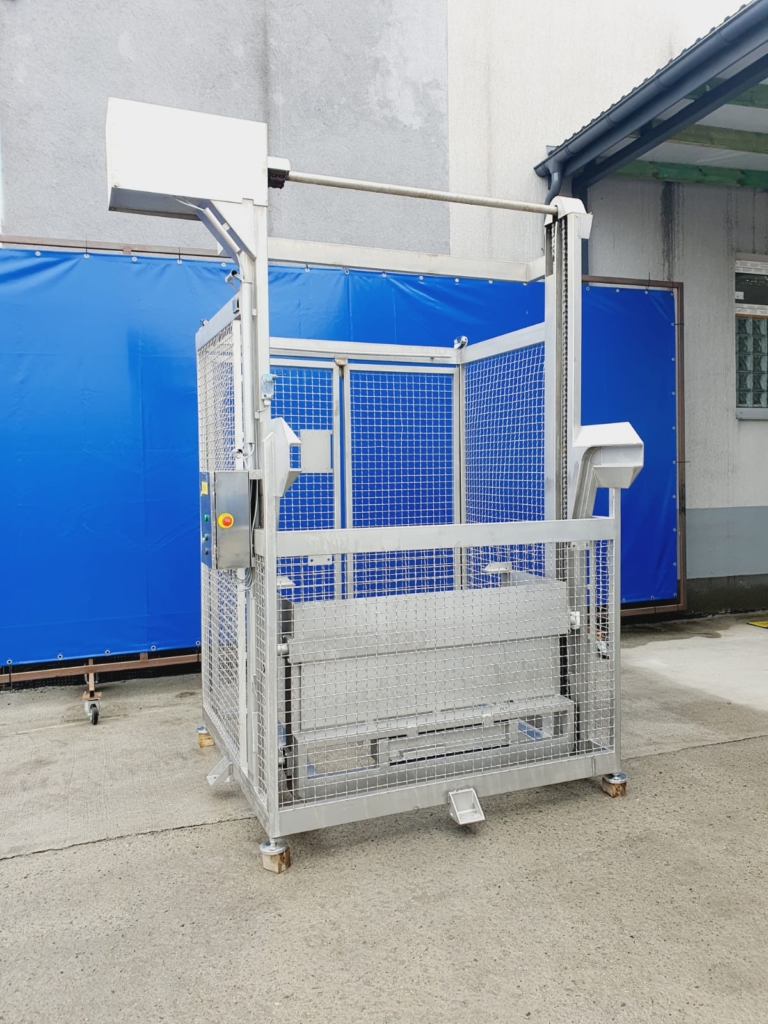 Cargador usado para contenedores con dimensiones de 1200 x 800mm, 1200 x 1000mm y 1200 x 1200mm. Capacidad máxima de elevación es 1000 kg. El dispositivo se utiliza para echar el producto, será perfecto en combinación con, por ejemplo, mezcladoras de gran capacidad. Fabricado íntegramente en acero resistente a los ácidos, lo que garantiza el máximo nivel de higiene y la facilidad de mantenimiento.