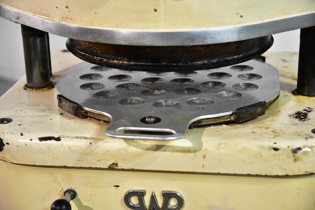 Dzielarko-zaokrąglarka do bułek WP (WERNER&PFLEIDERER). Maszyna służy do szybkiego dzielenia i formowania ciasta na bułki lub pączki. Do maszyny są dołączone 3 blachy formujące.