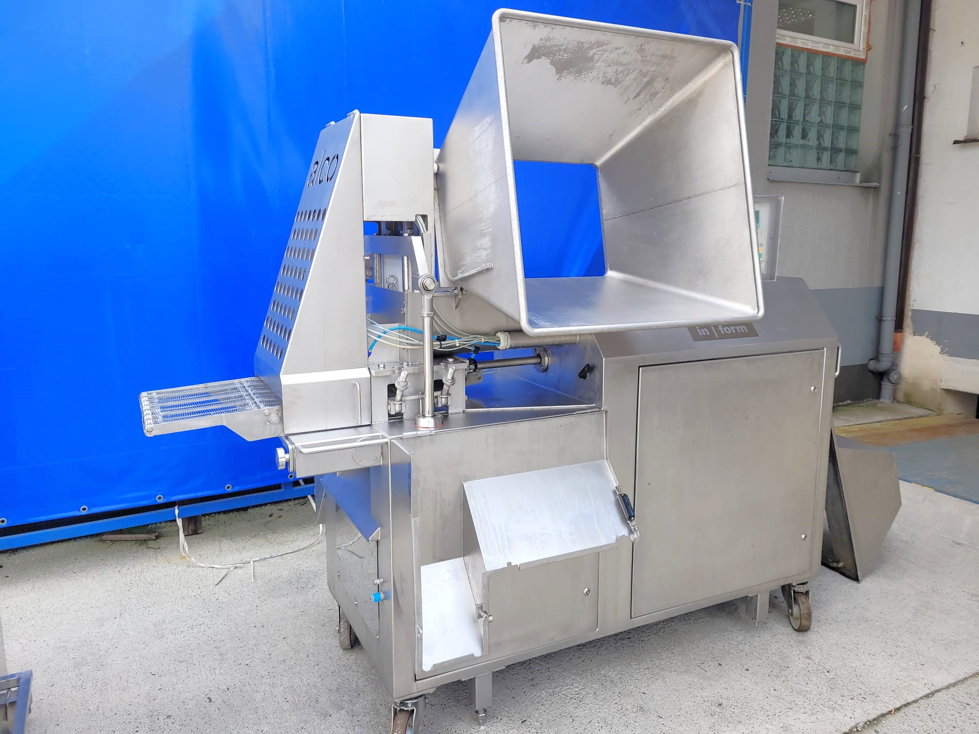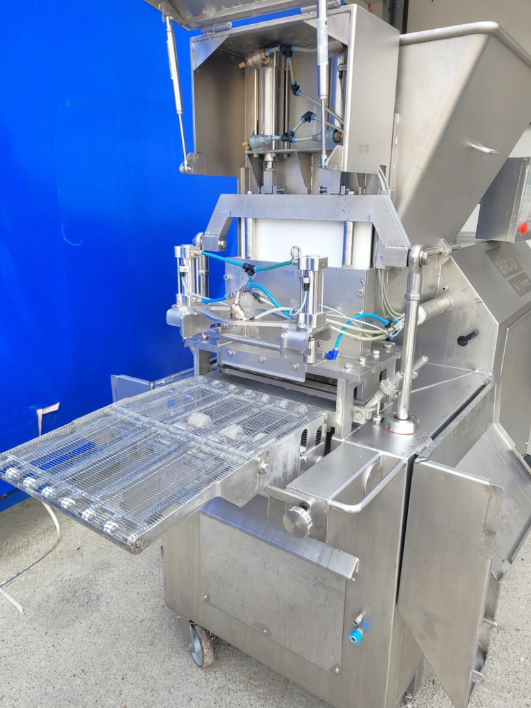 Używana formierka Alco AFM 400 jest wysokociśnieniową maszyną formującą, która pozwala uformować surowe masy o różnej strukturze produktu oraz porcjować je z dokładną wagą. Kształt końcowy jest dopasowany do wymiarów formy i jej kształtu.