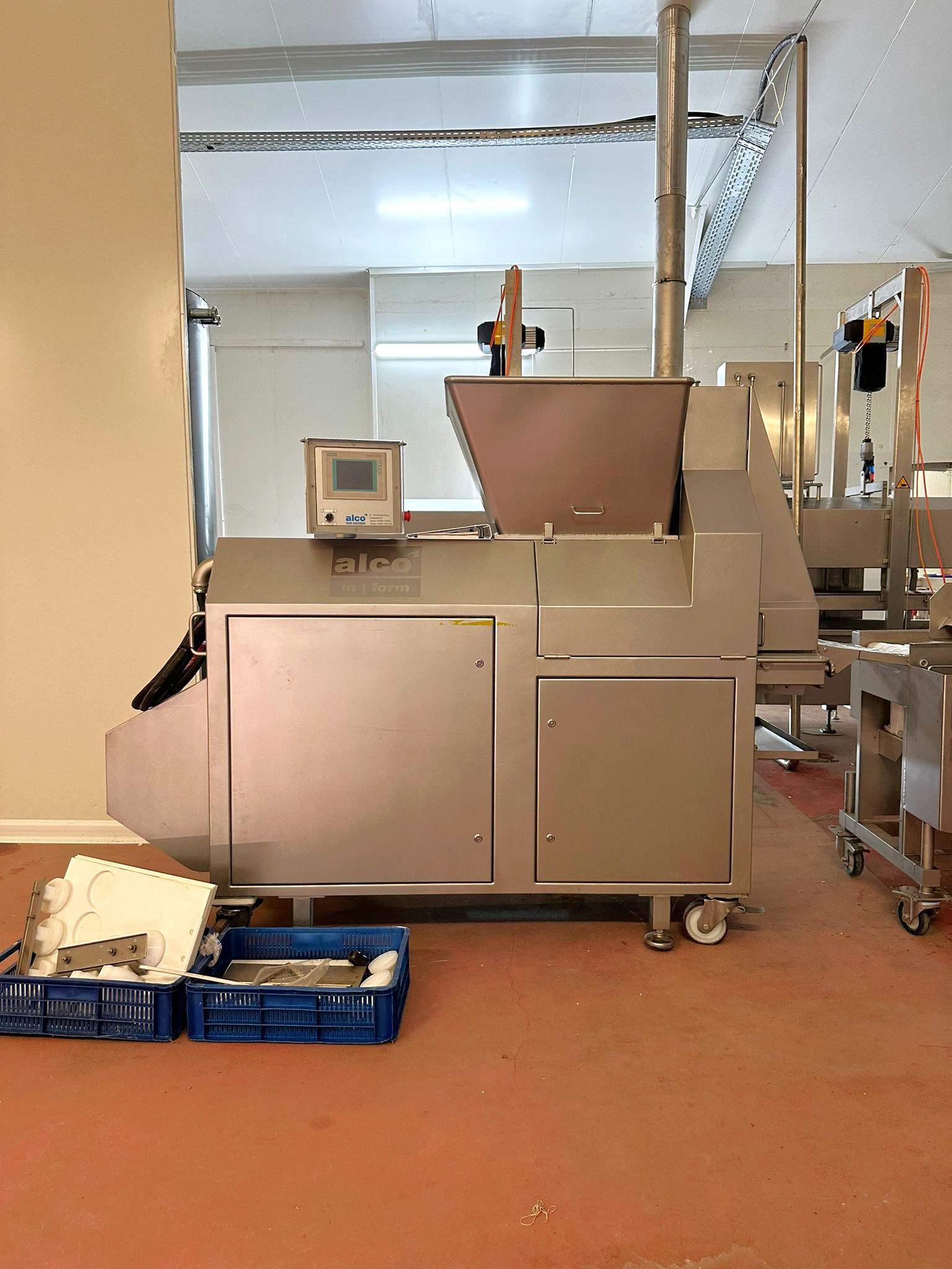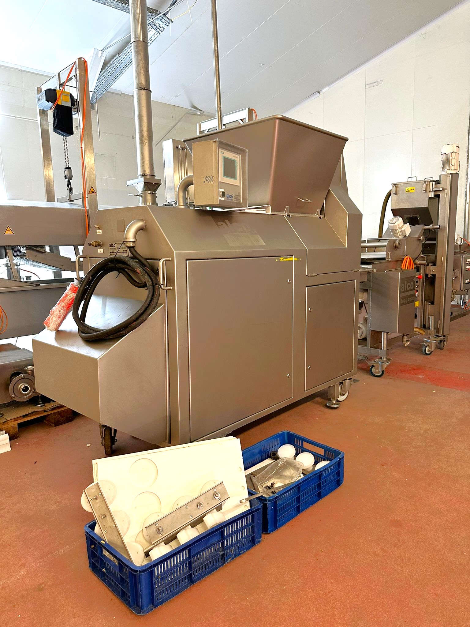 Maszyna do formowania ALCO / JBT AFM 400 PC to wysokowydajne urządzenie przeznaczone do formowania produktów spożywczych o różnych kształtach i rozmiarach. Dzięki precyzyjnemu systemowi ciśnieniowemu maszyna może formować surowce mięsne, rybne, warzywne i inne masy spożywcze w formy o atrakcyjnych kształtach 2D i 3D.