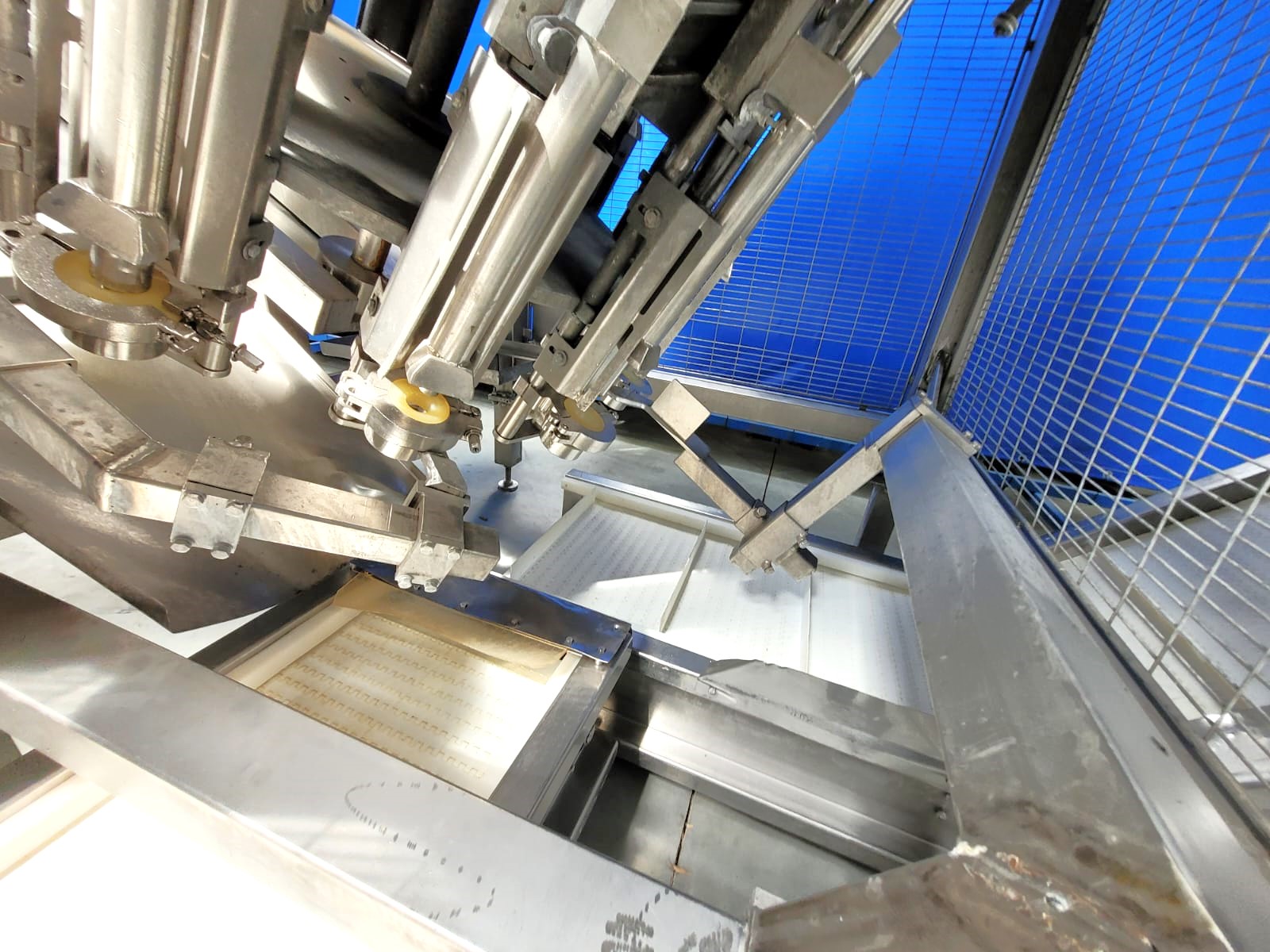 Maszyna wyposażona w dwa transportery wyjściowe produktu.