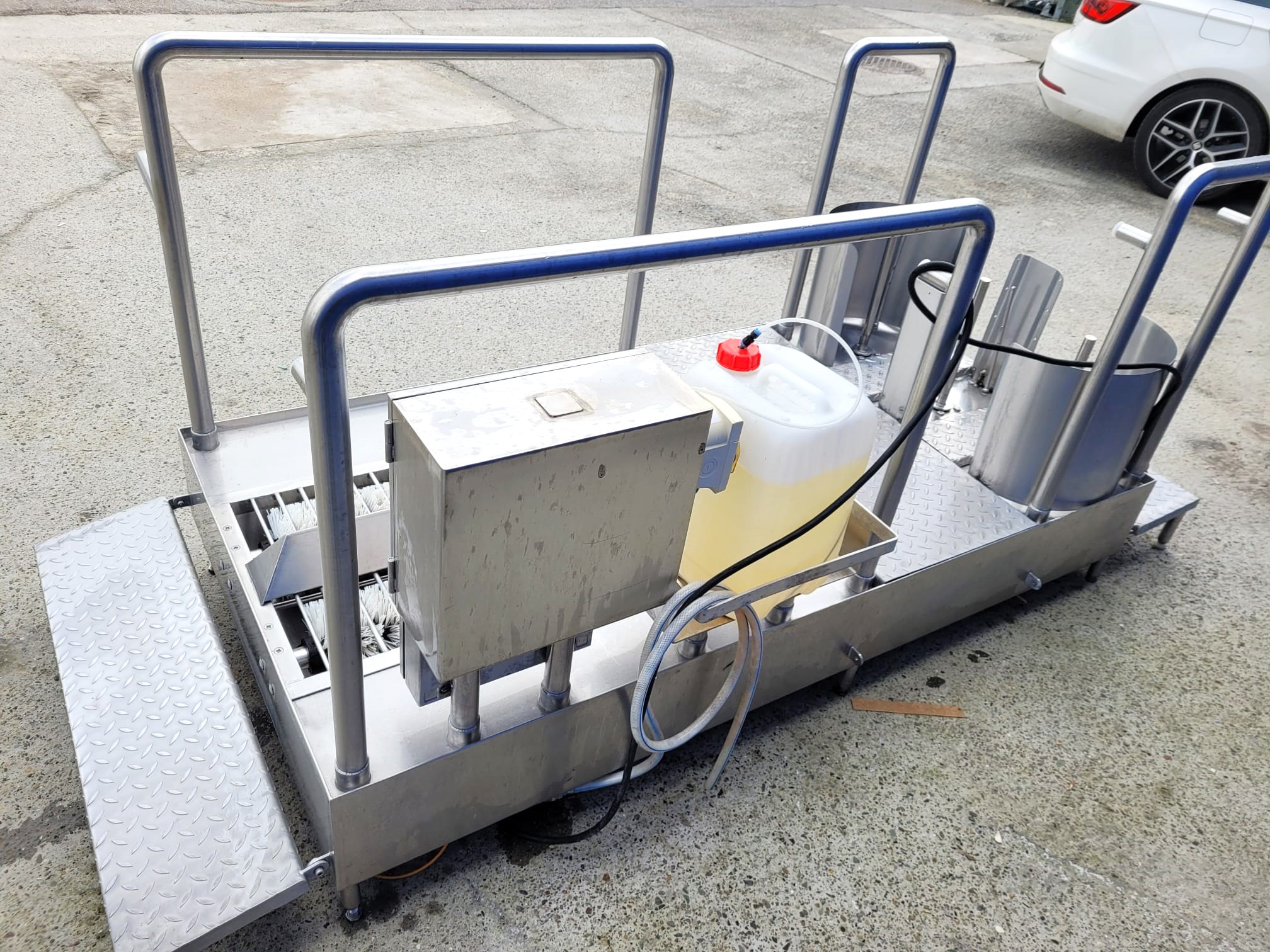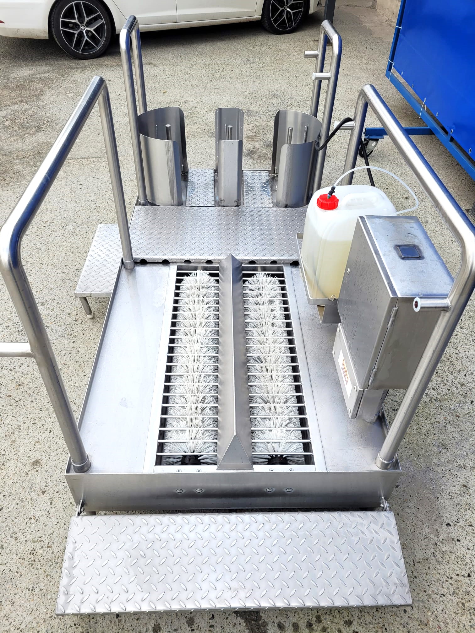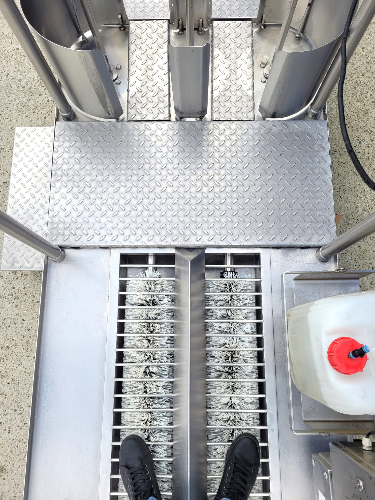 Po wejściu na platformę włącznik uruchamia obrót szczotek i dopływ detergentu, po przejściu wyłącza się.