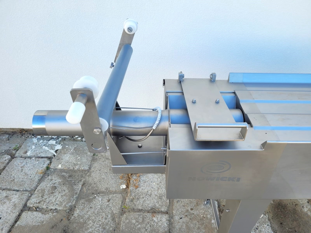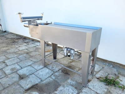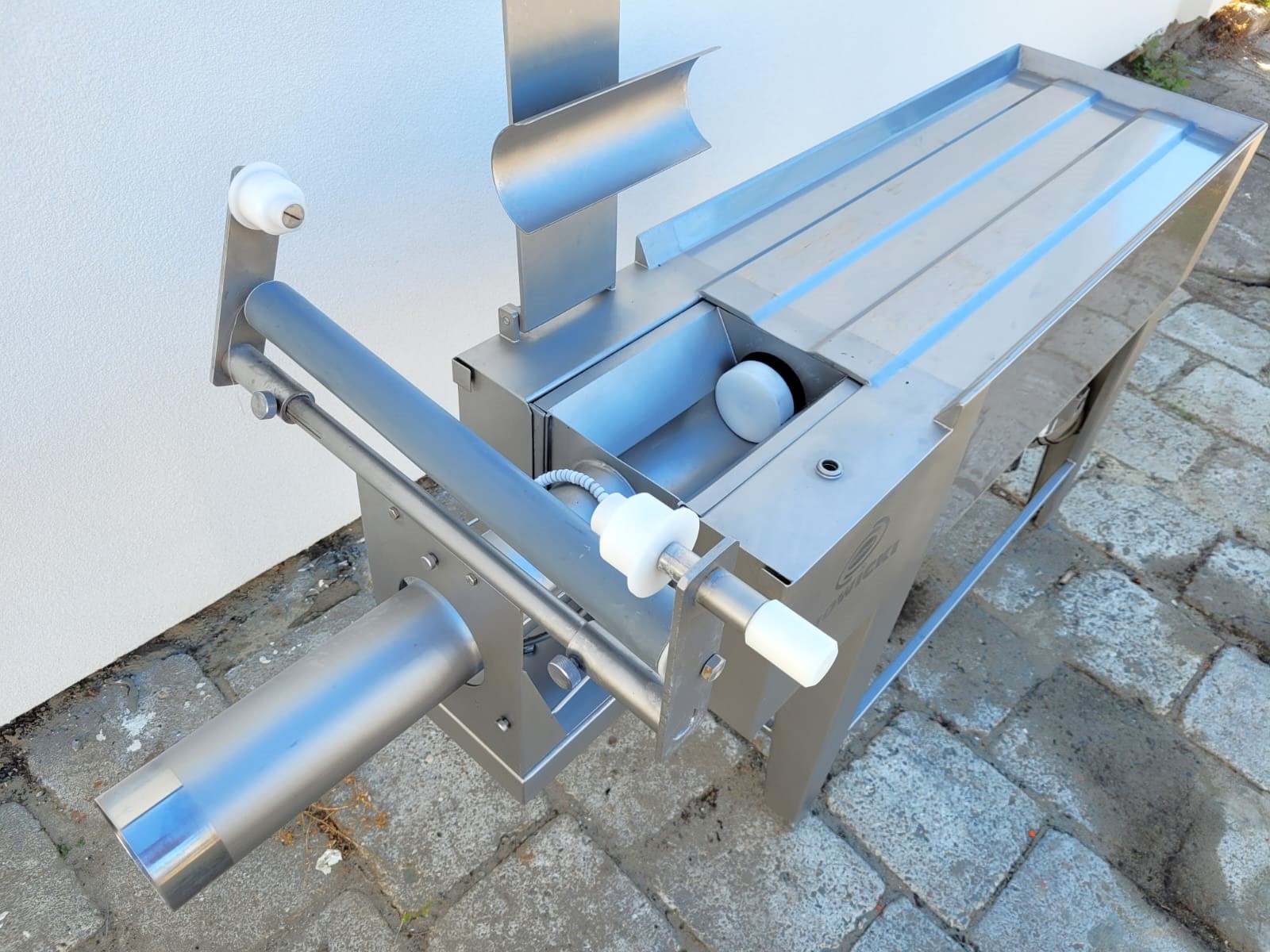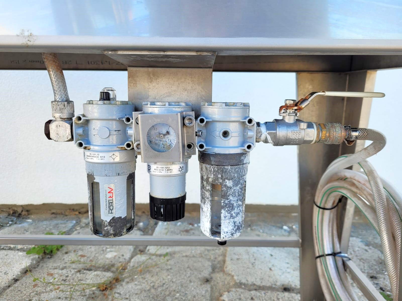 Używana prasa do szynki Metalbud Nowicki NM-2K znacznie ułatwia i usprawnia wprowadzanie szynki lub mięsa do siatki wędzarniczej podczas przygotowywania wędlin. Tłok napędzany jest sprężonym powietrzem.