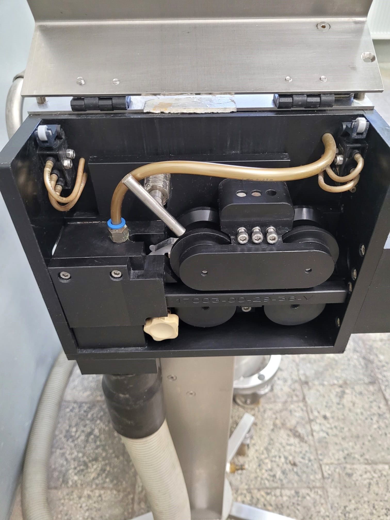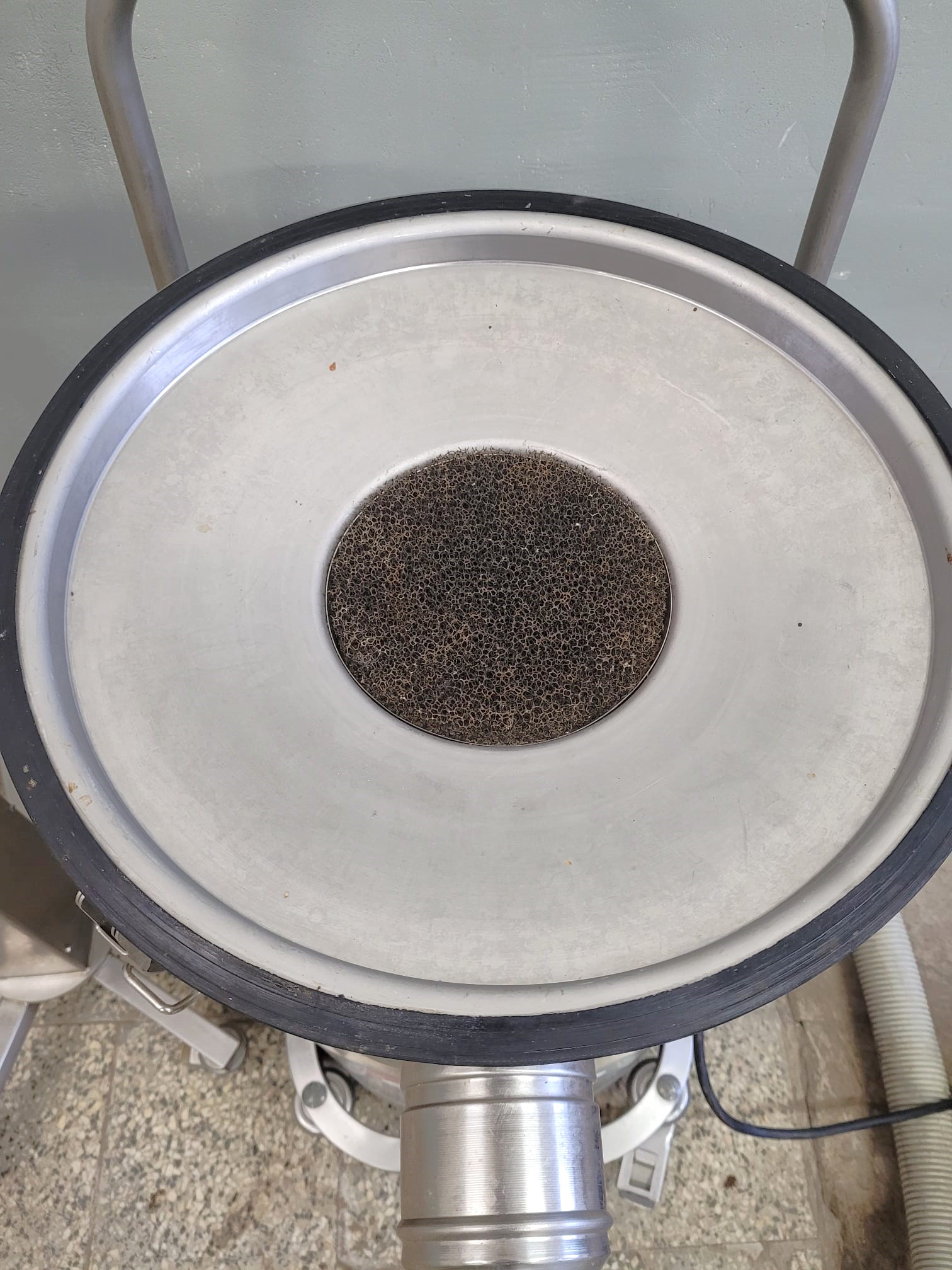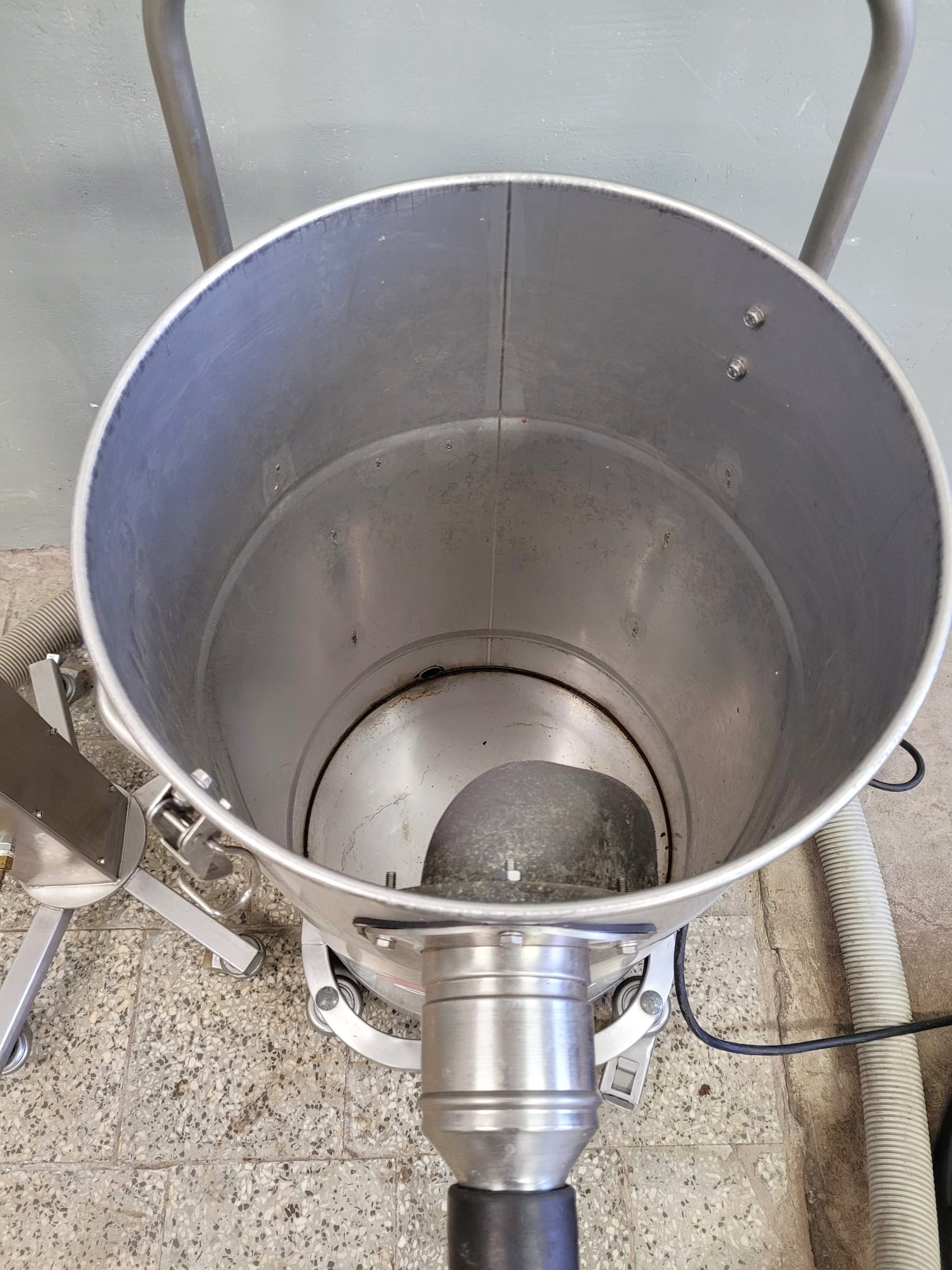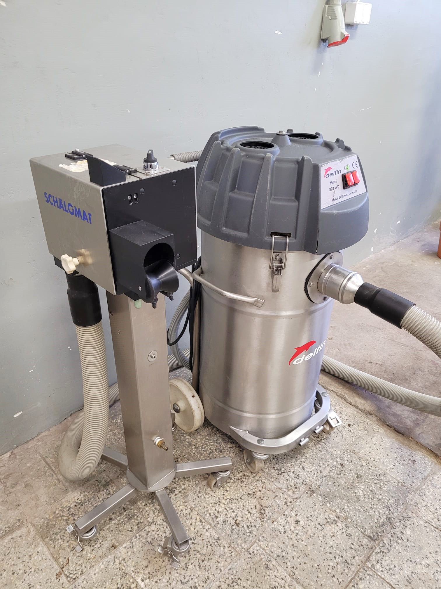 W zestawie znajduje się przemysłowe urządzenie ssące o pojemności 120 litrów i przyłączu 220 V.