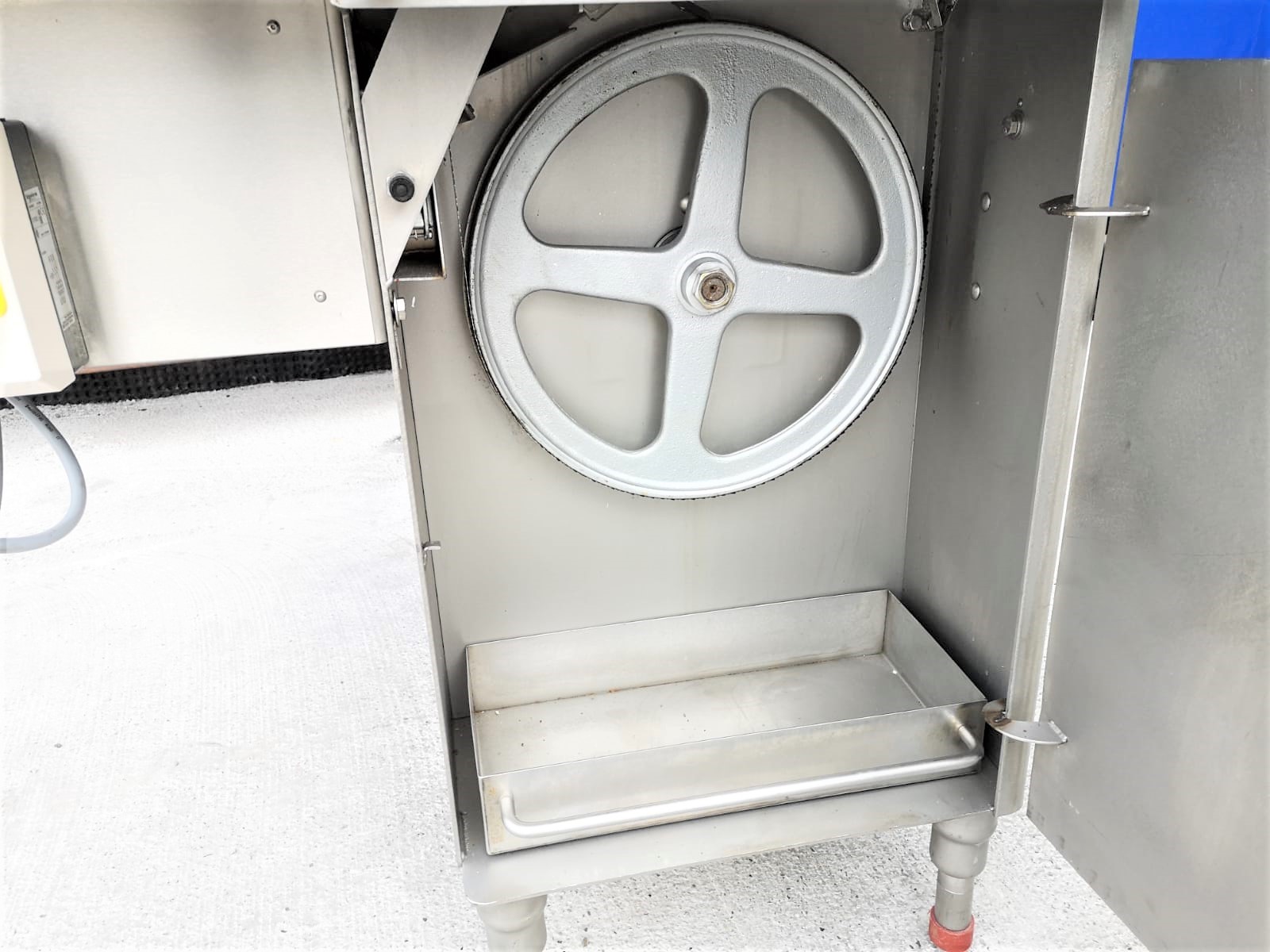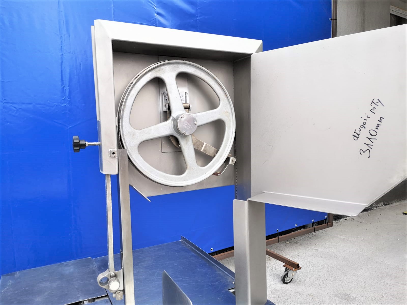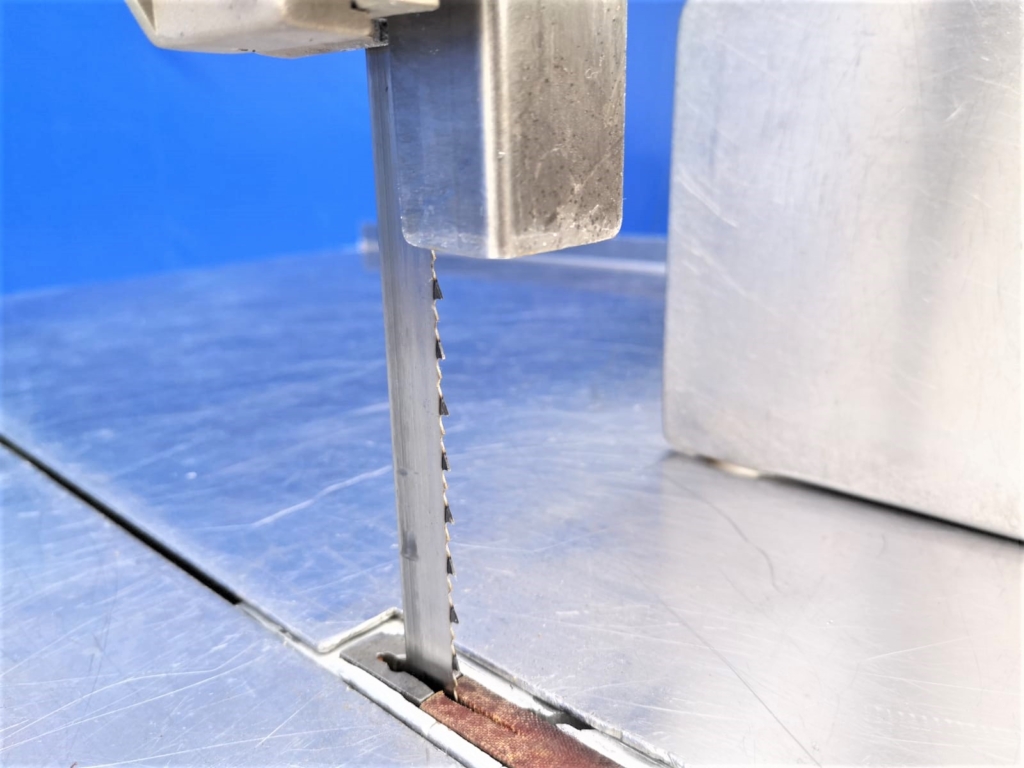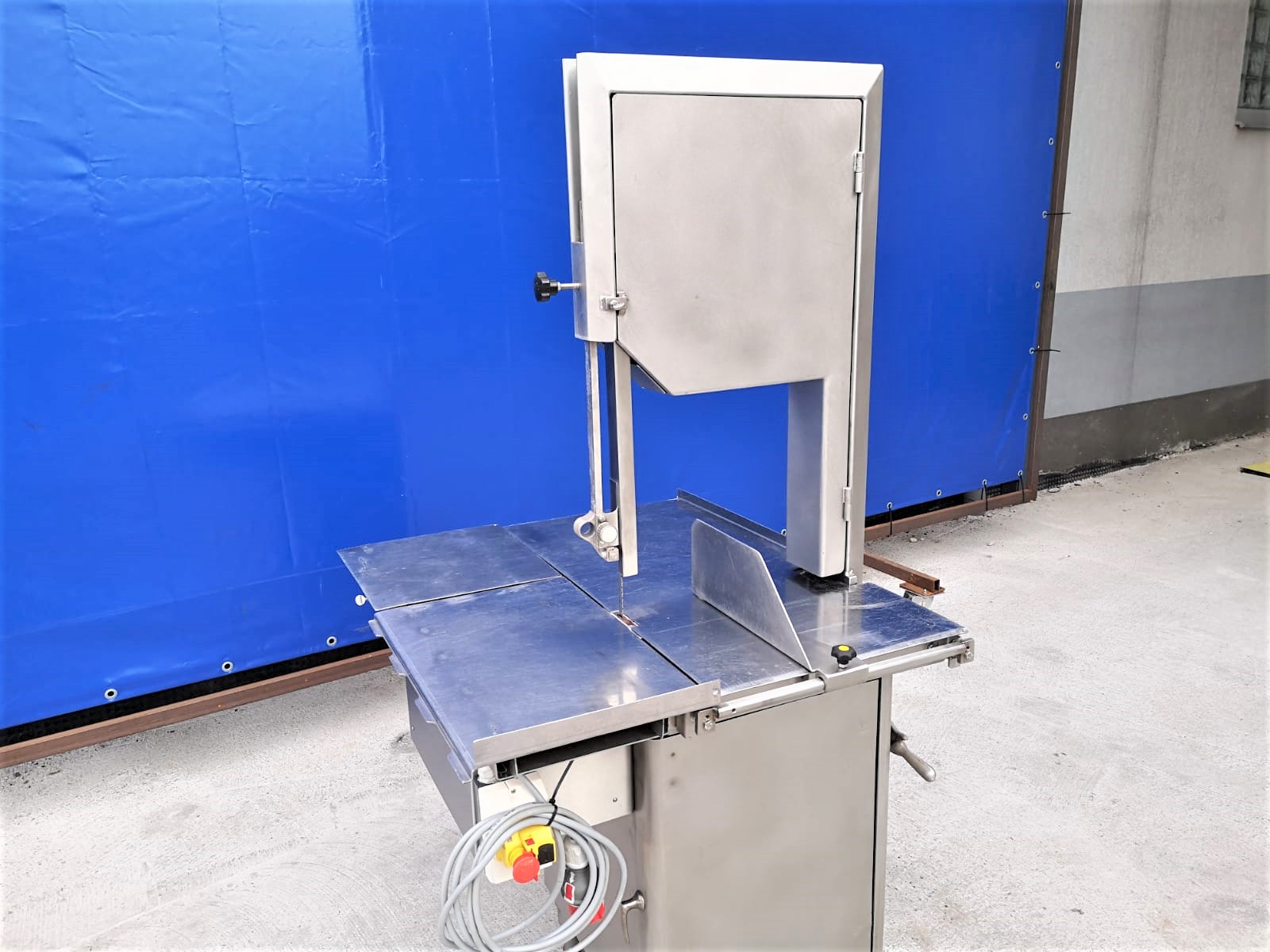 Używana piła taśmowa doskonale sprawdzi się przy cięciu i [porcjowaniu mięsa, mięsa z kością oraz produktów mrożonych.