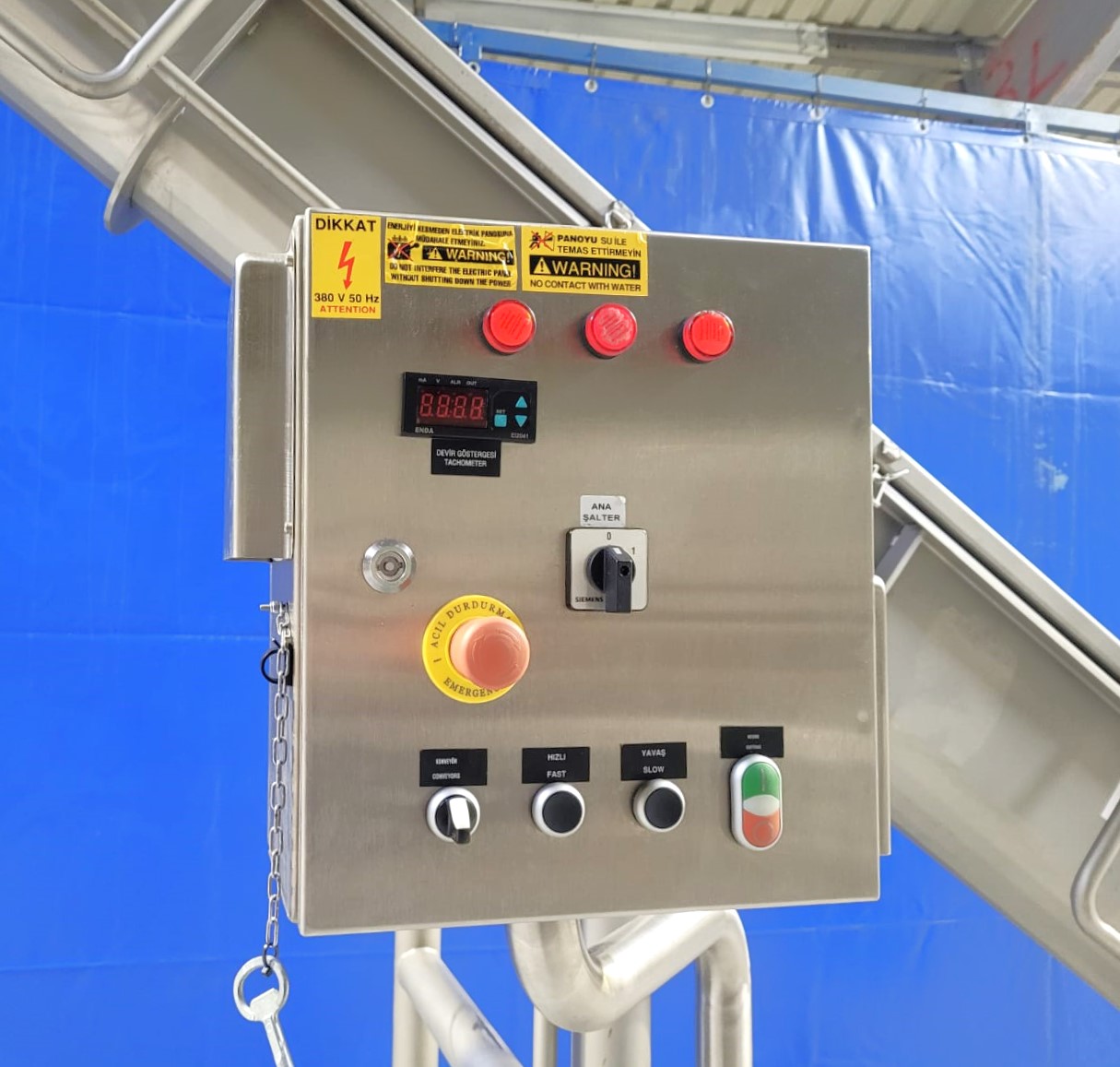 Całość konstrukcji wykonana ze stali nierdzewnej, gwarantująca najwyższą higienę pracy oraz łatwość utrzymania.
