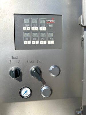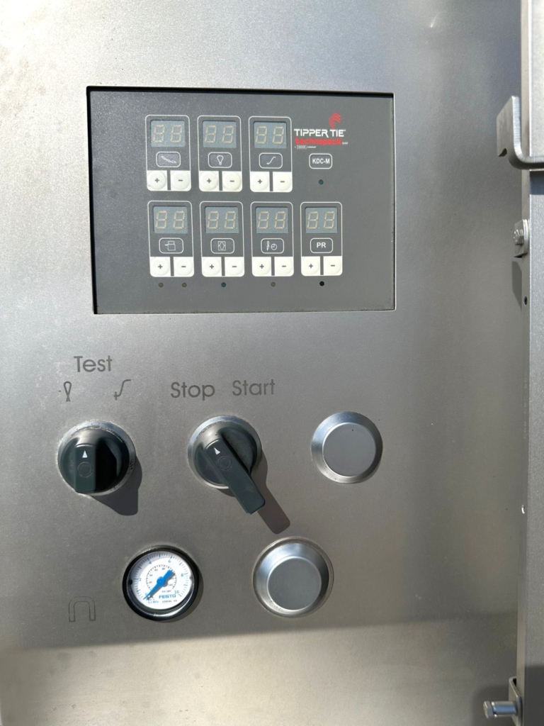 Używana półautomatyczna klipsownica TipperTie KDCMA 400 jest uniwersalnym urządzeniem do klipsowania różnych typów kiełbas.