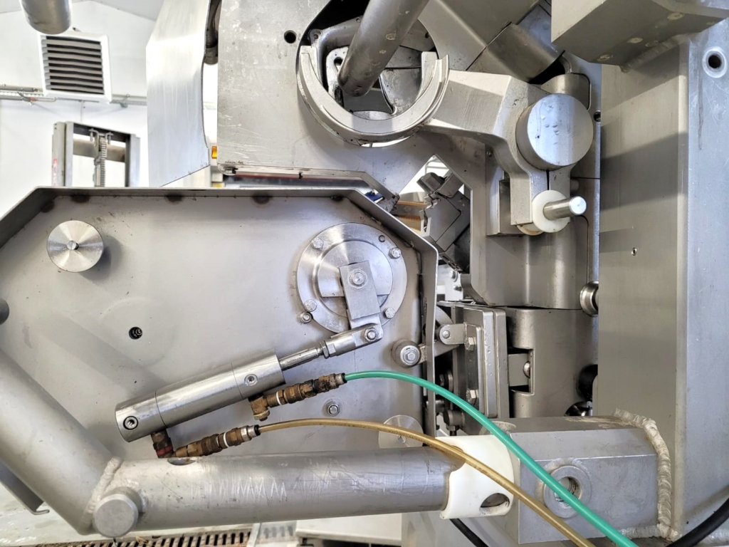 Używana automatyczna klipsownica PolyClip FCA 3463 przeznaczona jest do zamykania osłonek plastikowych i kolagenowych o kalibrze od 40 do 120 mm. Elastyczność kalibru uzyskuje się dzięki szybkiej zmianie wielkości klipsów z 15 na 18 mm i z 30 na 36 mm. Sterowanie urządzeniem odbywa się za pomocą intuicyjnego ekranu dotykowego. Wytrzymała konstrukcja ze stali nierdzewnej zapewnia łatwość konserwacji i maksymalną higienę pracy.