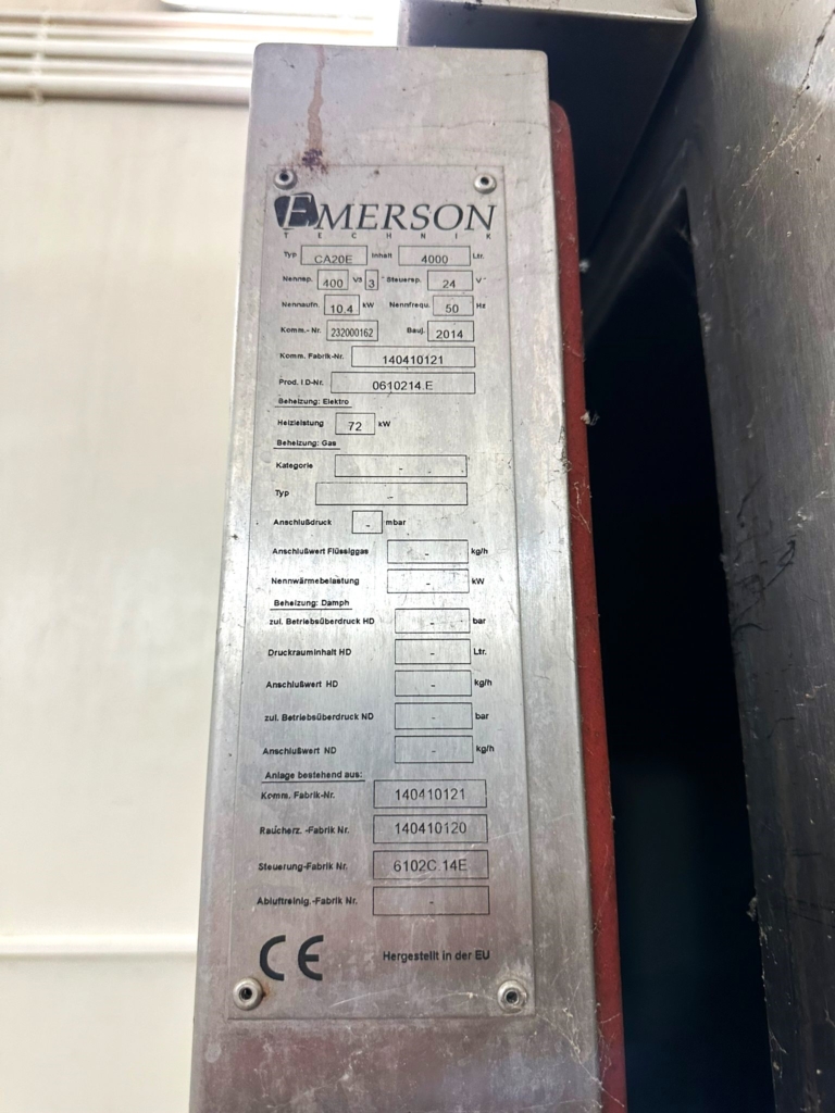 Komora wędzarnicza Emerson Model CA20E z ogrzewaniem elektrycznym to profesjonalne urządzenie powszechnie używane do wędzenia mięsa, ryb i innych produktów spożywczych.