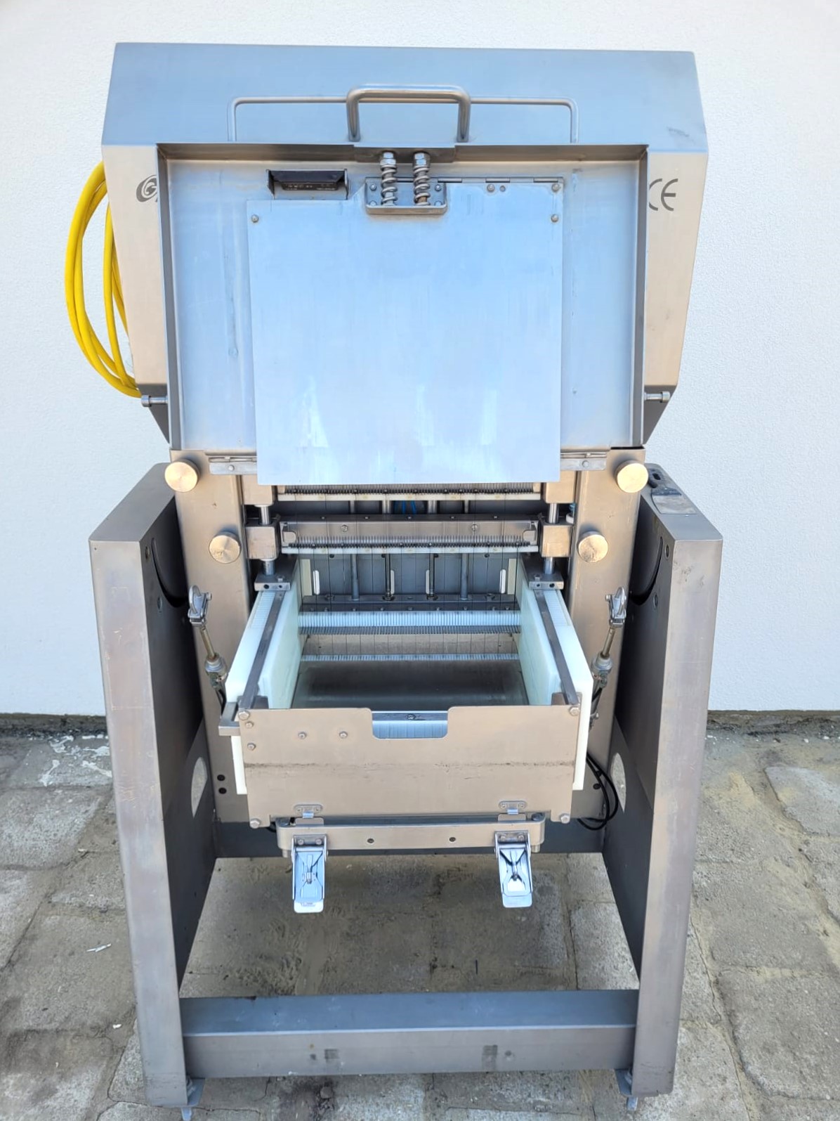 Pionowa krajalnica SL400 firmy Grasselli jest przeznaczona do krojenia produktów w jednolite paski. Nadaje się do świeżego mięsa, drobiu i ryb. Krajalnica ta charakteryzuje się wyjątkową precyzją i wydajnością, minimalizując straty produktu. Poradzi sobie nawet z lekko zamrożonymi (crust frozen) produktami w temperaturze -3/-4 stopni Celsjusza.