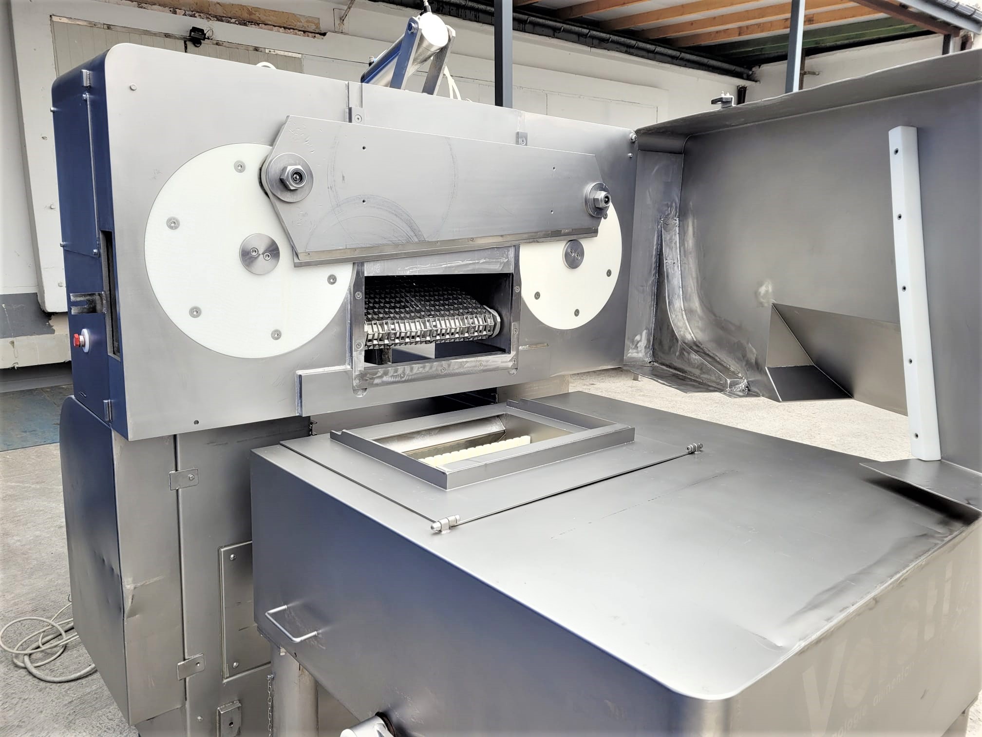 Używana gilotyna do mięsa Velati została zaprojektowana do procesowania całego bloku mięsa w kawałki mięsa za pomocą systemu ostrzy zaprojektowanego specjalnie w celu uniknięcia uszkodzeń i rozbijania produktu.