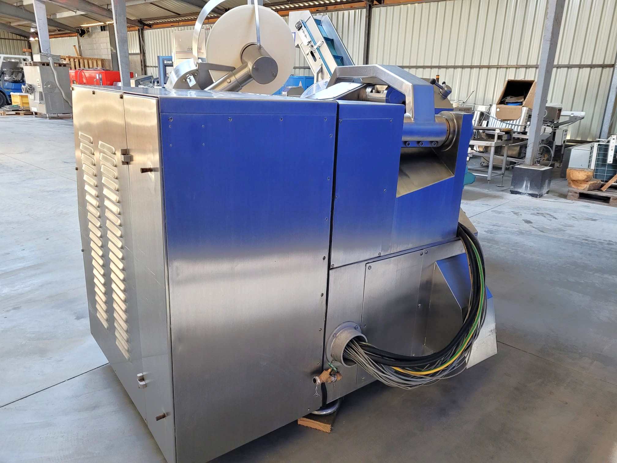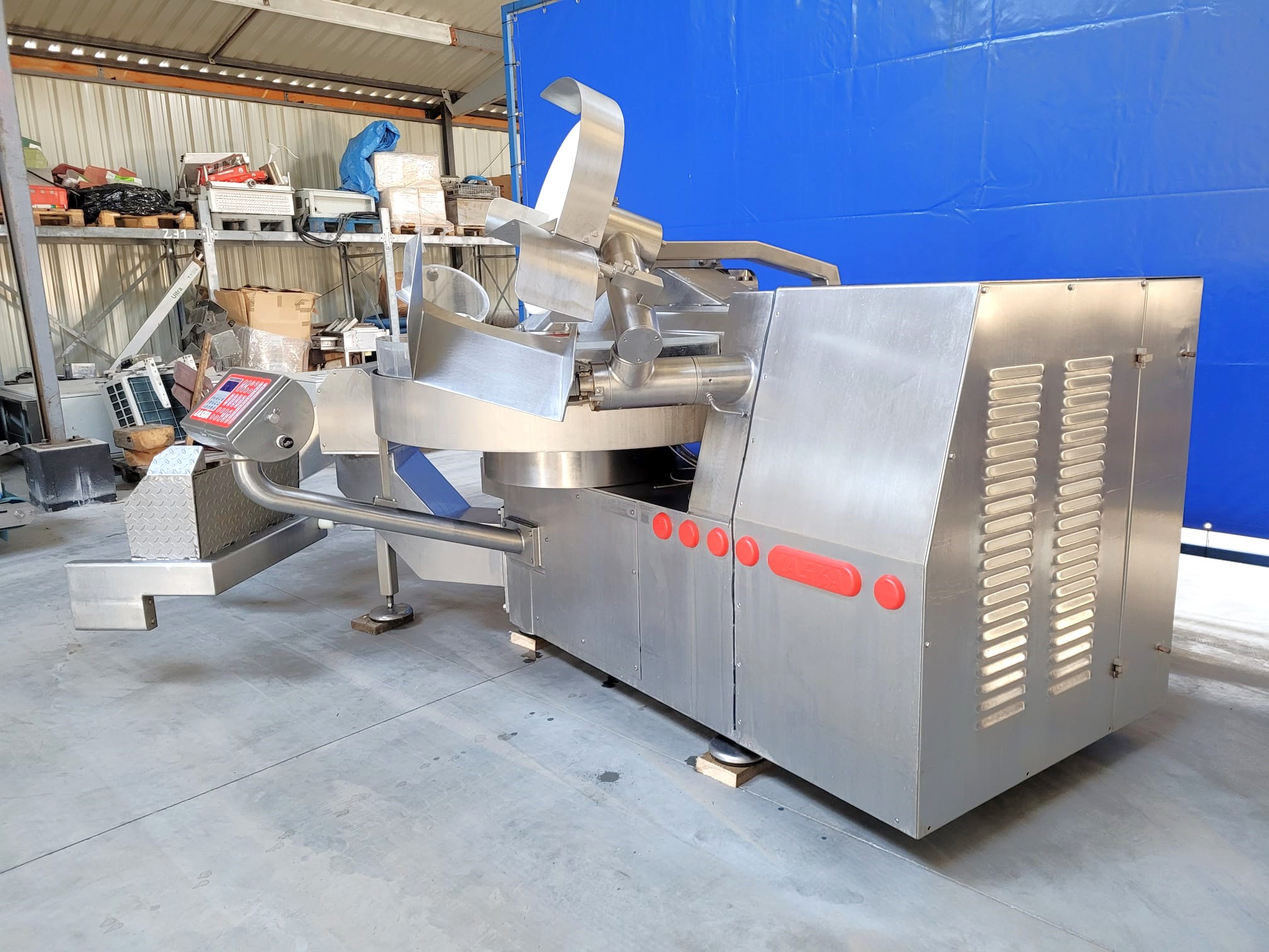 Używany kuter masarski Laska KU200 to wysokowydajna maszyna zaprojektowana dla przemysłu spożywczego, oferująca szereg funkcji, które zwiększają jej możliwości cięcia i mieszania. Znana jest z wysokiej prędkości obrotów noża, która jest jedną z najwyższych w branży, zapewniając wydajne i precyzyjne cięcie.