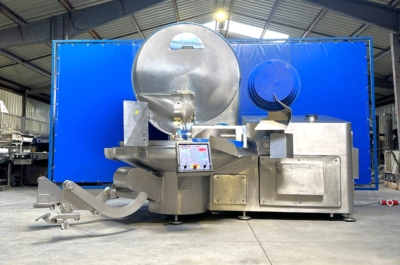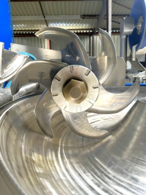 Kuter próżniowy GEA, CFS, Krämer+Grebe o pojemności 325 litrów to wysokowydajna maszyna zaprojektowana do wydajnego przetwarzania mięsa. Dodatkowo wyposażona w opcję gotowania.